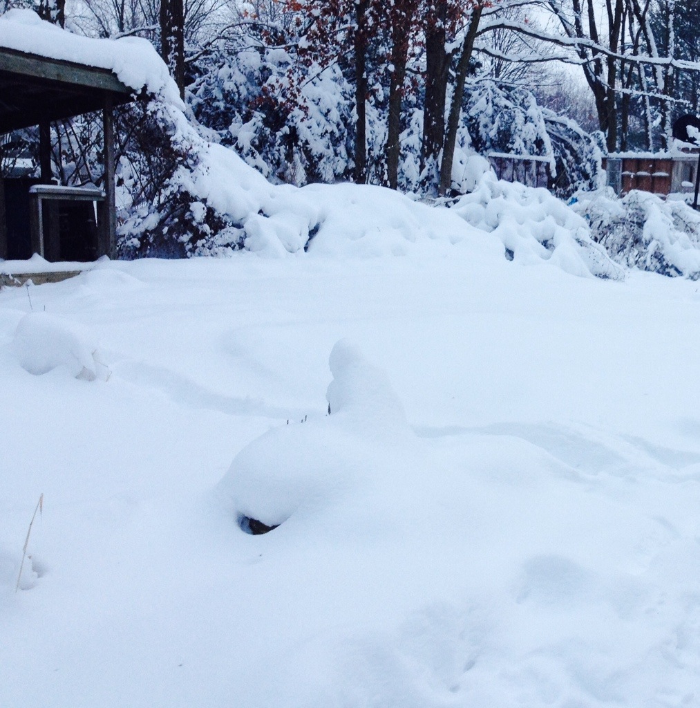 Today. A foot of snow on the ground. Coming out of the deep freeze, we are beginning to melt. Such a fine thing – melting. Almost as much fun as freezing. It was 15 below on Monday – 30 above today. The garden barely noticed the cold, protected as it was by the snow. It will notice the thaw.