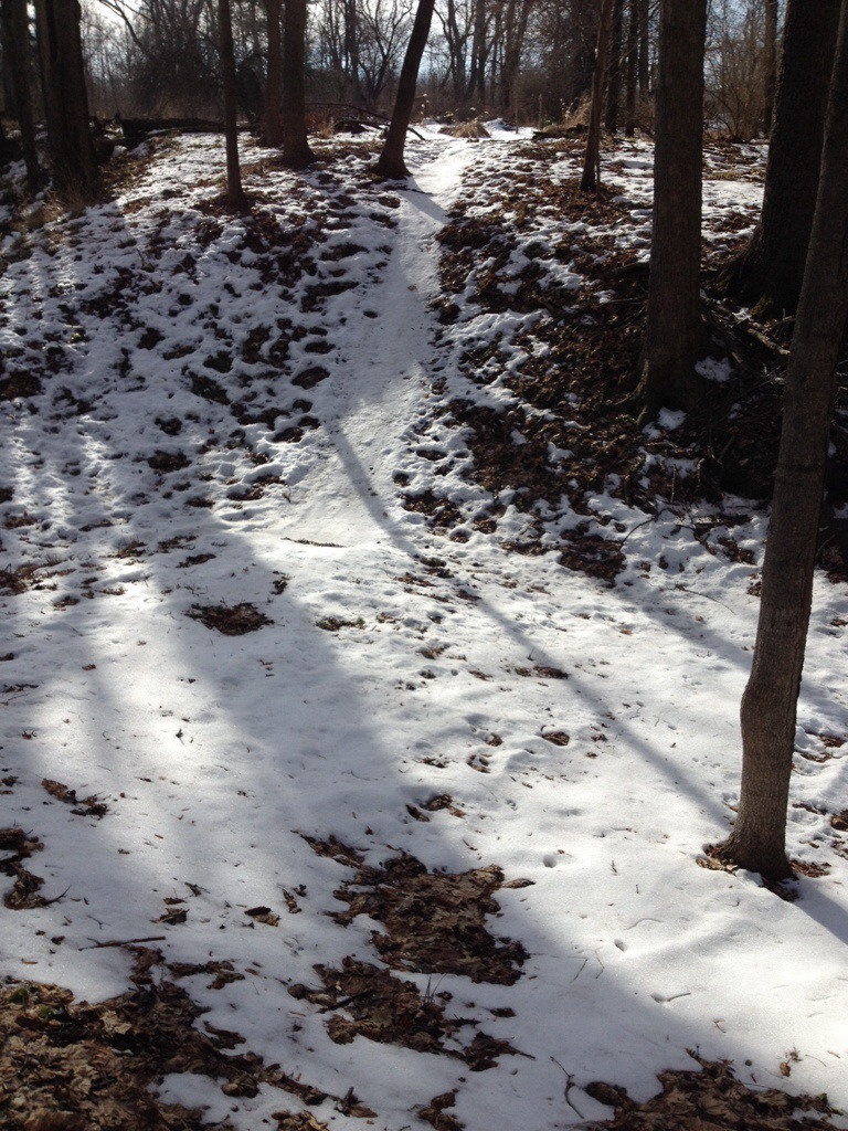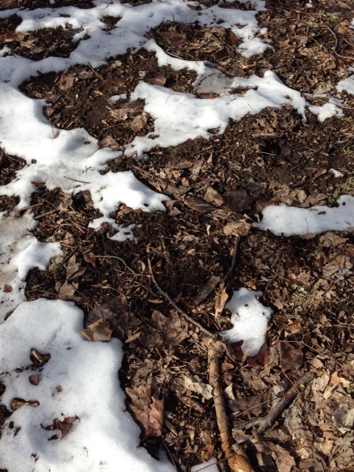Gnome, always looking for the day’s little curiosity, notes that the sledding hills look great today. No good for sledding but you can really see them as the snow melts around them.