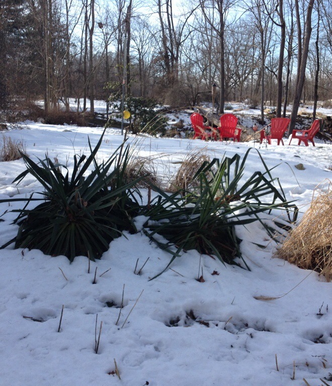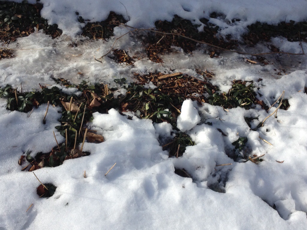 Everyone agrees we’ll need to watch the vinca again this year. Vinca is one of the most notorious aggressors in this garden. It sure does look great today, though, holding a deep shade of green through the winter.