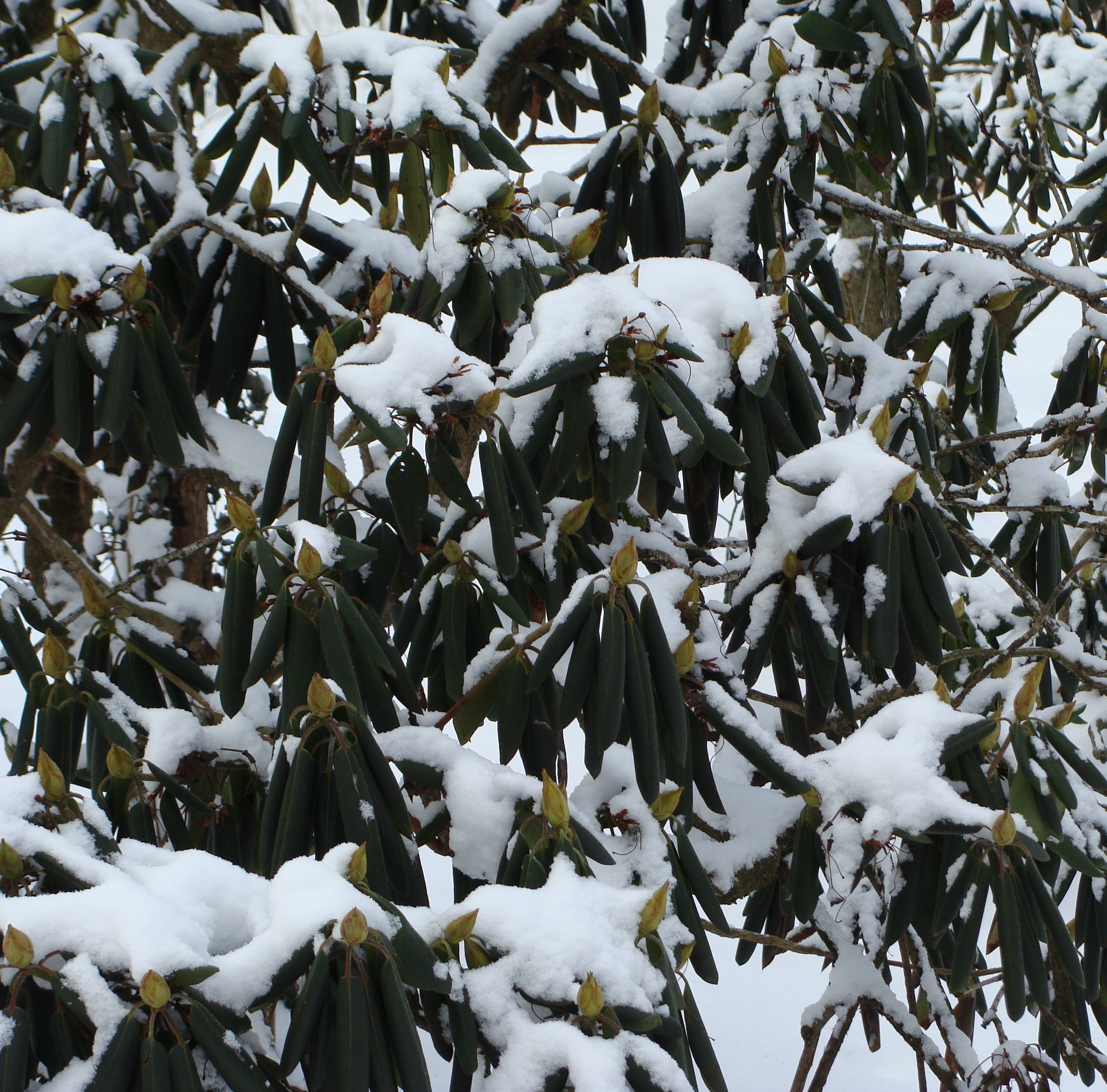 Perhaps the rhododendron feels it most keenly. Sunday morning, she looks like she has had enough of winter.