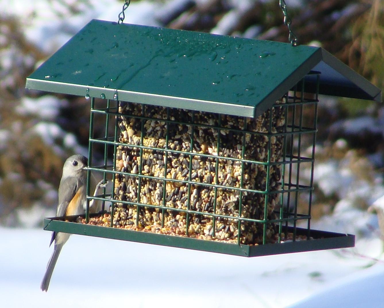Meanwhile, our little friend the tufted titmouse showed up for a snack.