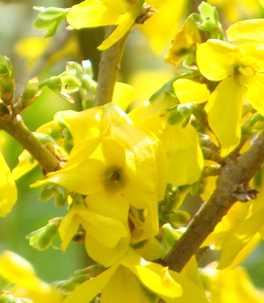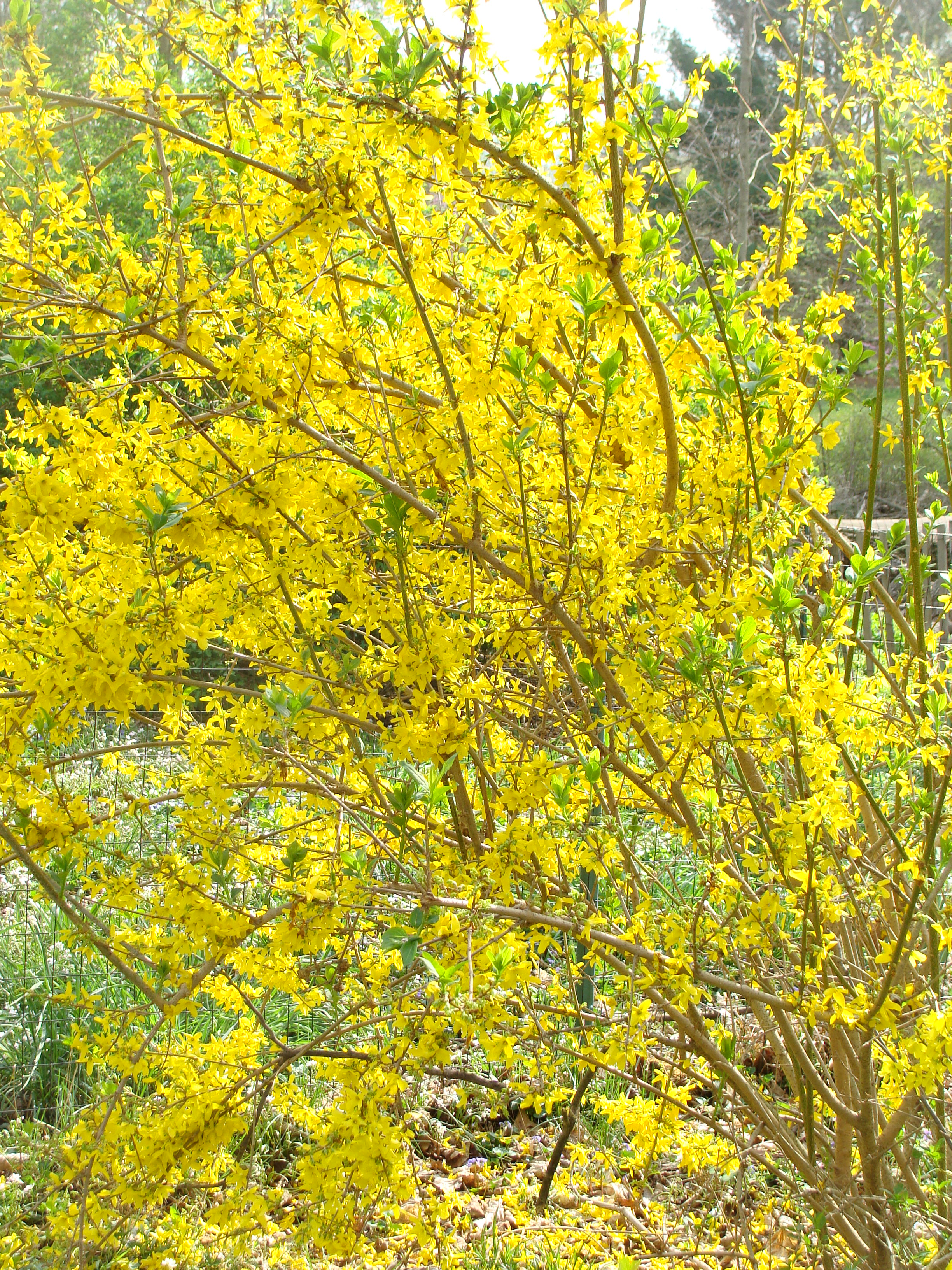 She is flying into the forsythia bush….