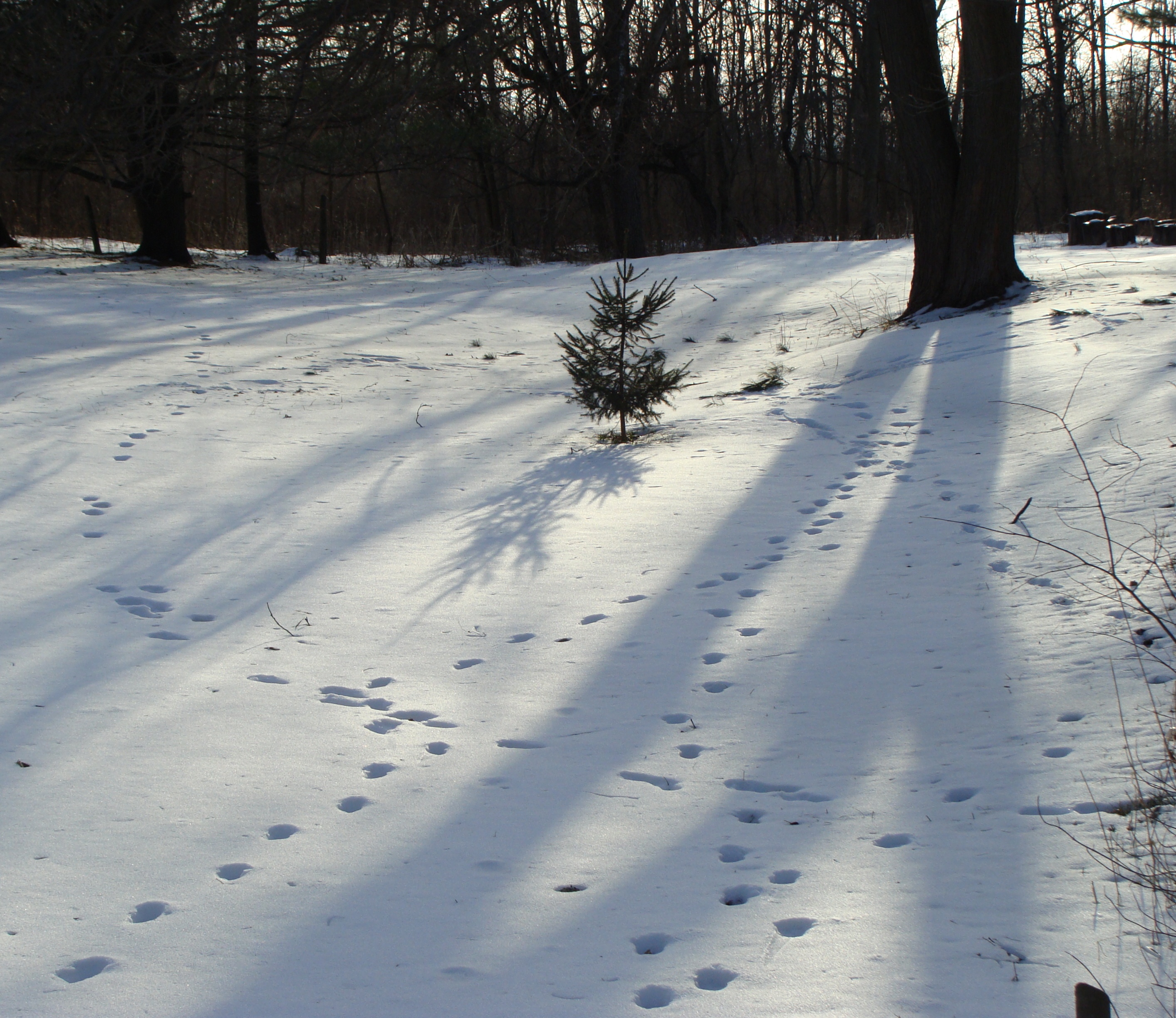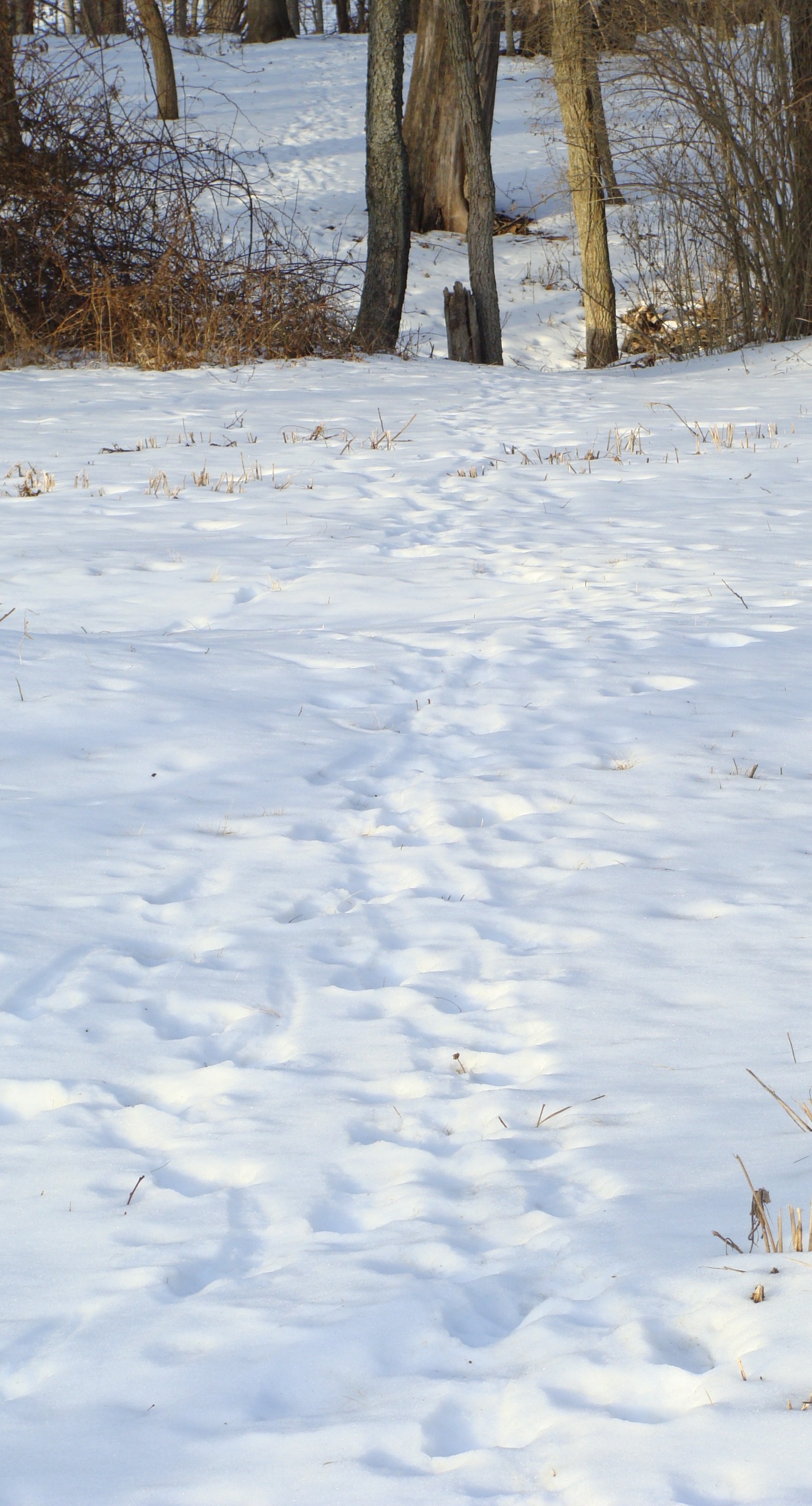 Iron Turtle figures that if we are going to concern ourselves with tracks in the snow, we really ought to check into this highway of tracks made by deer, dogs, and variety of woodland critters: