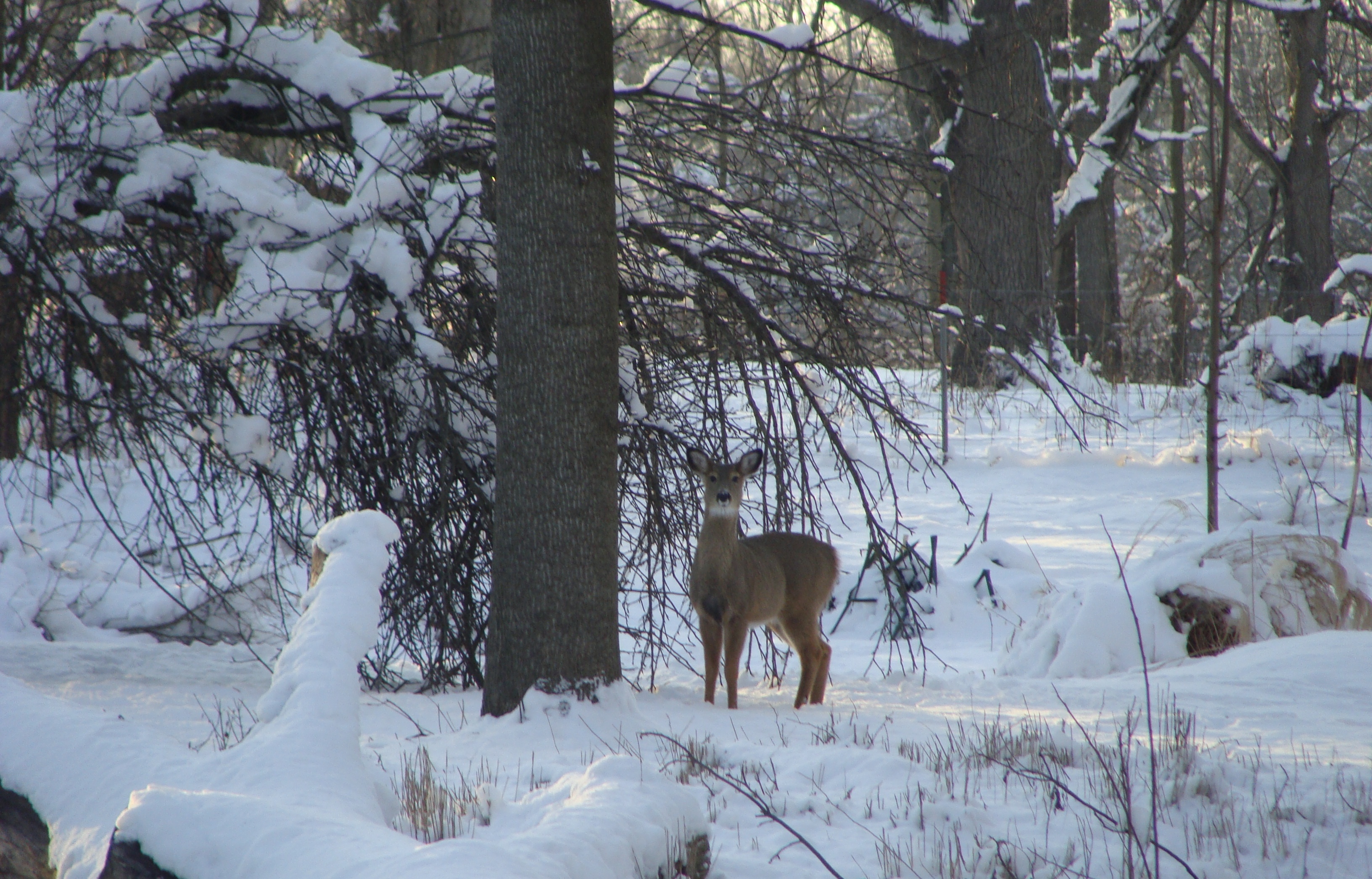 She spooks and runs into the ethereal light of the woods, tail flashing: