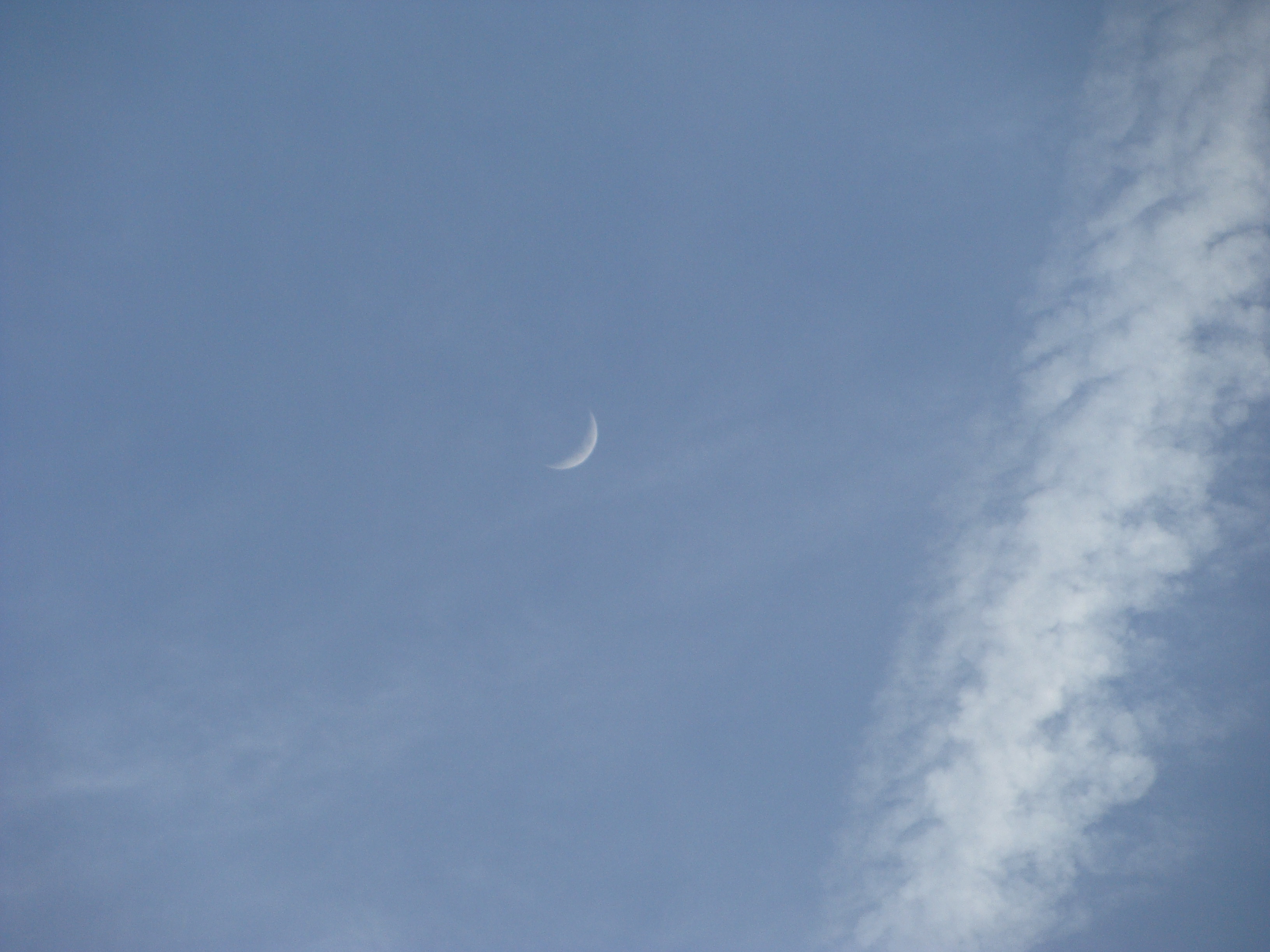 The views on this site are always taken from within Jim’s garden, but they aren’t always of things actually IN Jim’s Garden. Like a cloud passing in front of the new moon: