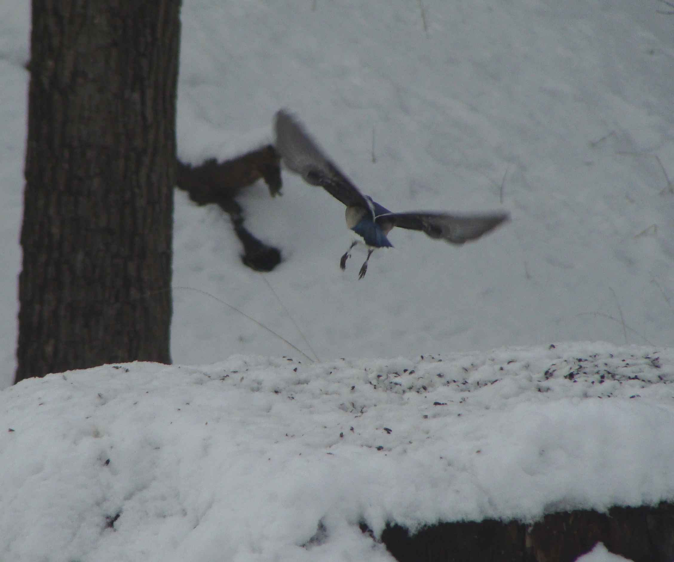 Now look back at the first picture and try to see the bird without the owl face. It strikes me that in that particular moment this blue jay was safe from the hungry hawk contingent.