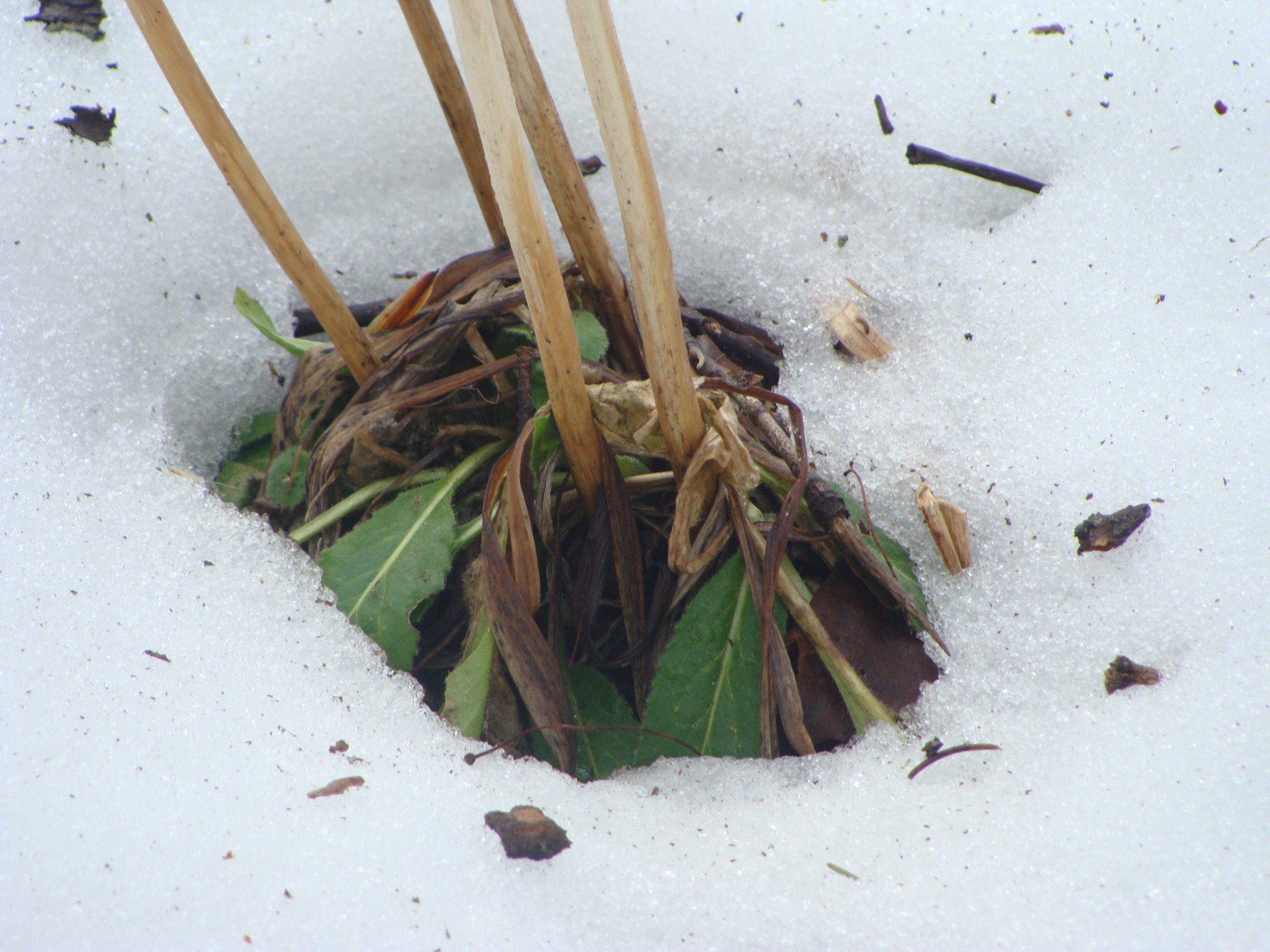 The air warms and thunderstorms pass through, positively SHREDDING the lovely snowpack we have been enjoying for the previous month. The good news is it feels like we’re moving towards Spring. The better news is that, eliminating the snow so quickly, we have the chance to see a snapshot of how some of the garden plants were faring under the snow.