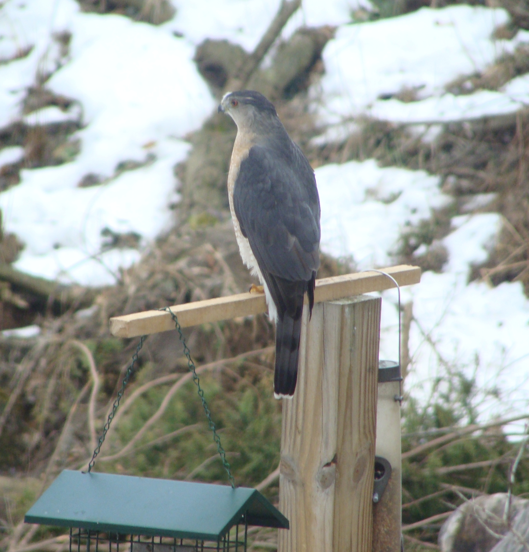 Honestly, did it think the songbirds would fail to notice it perched upon the feeders?