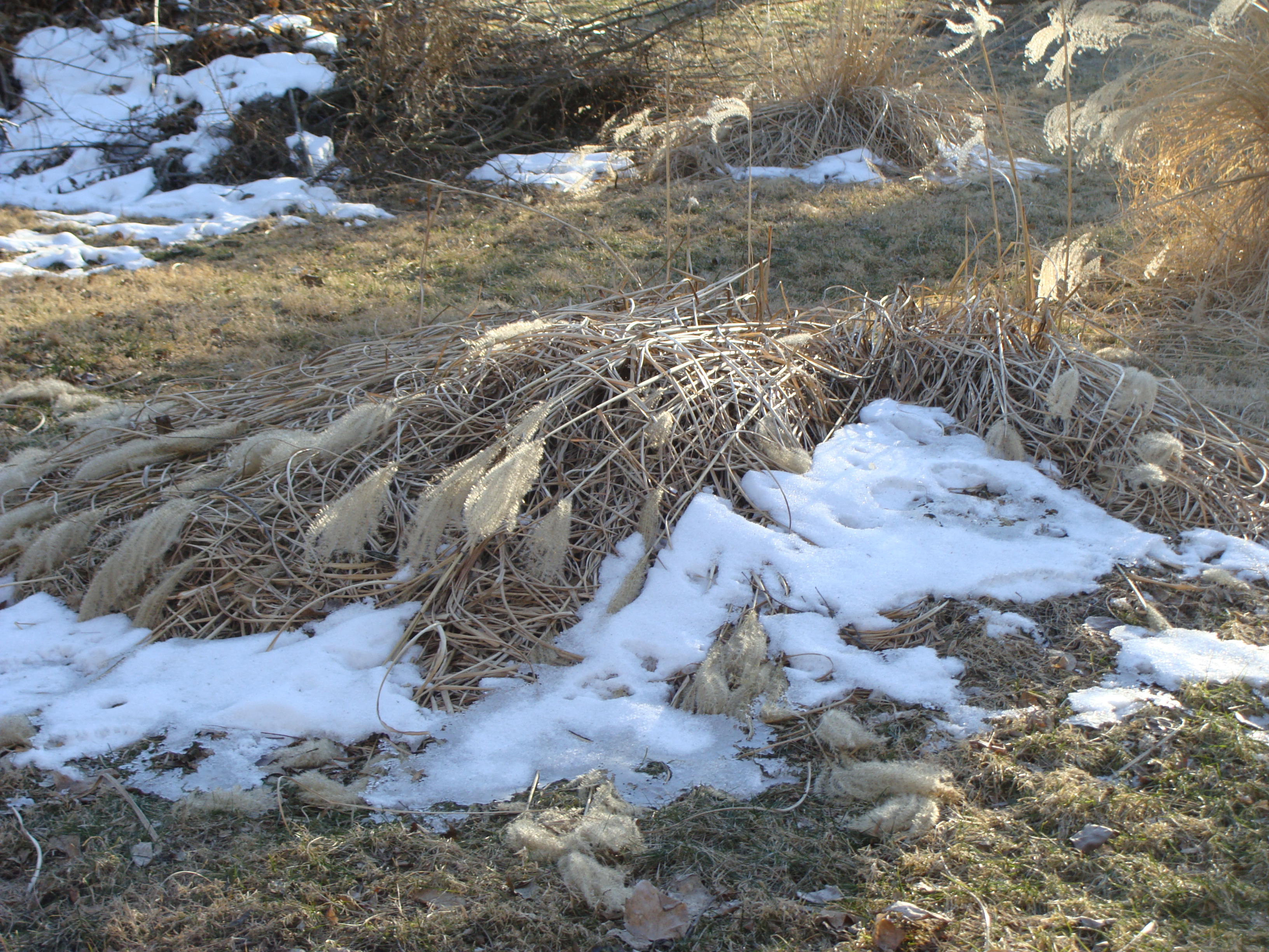 The “pampas grass” (Cortaderia) did not fare well under the heavy snow.