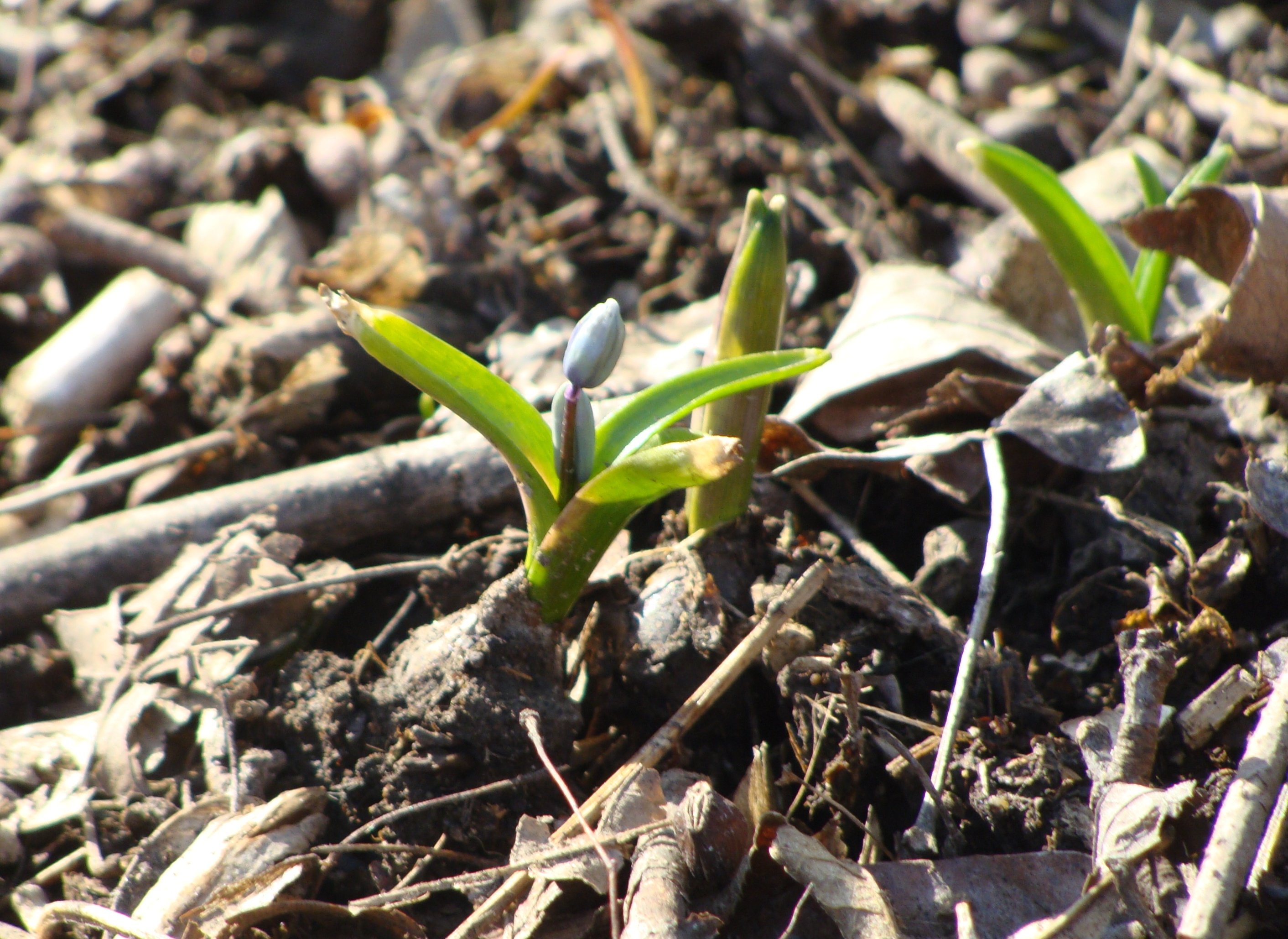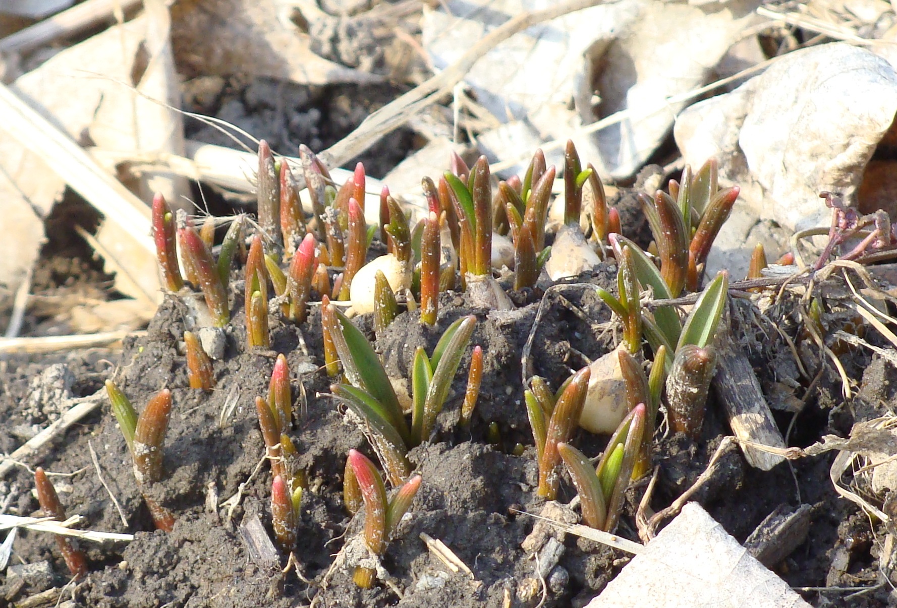 We have daffodils poking through the dry leaves…
