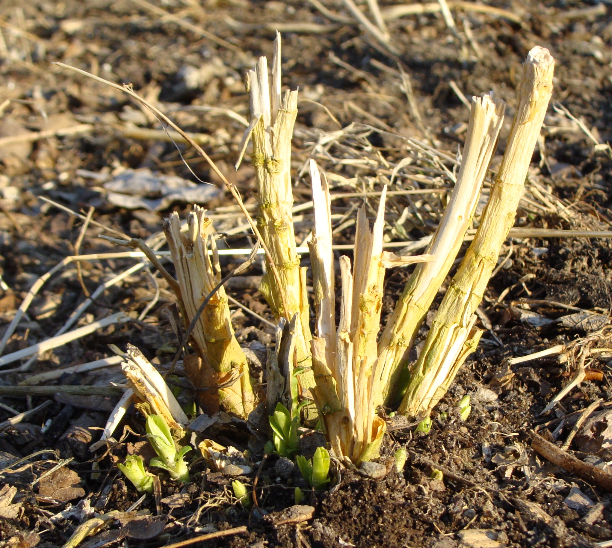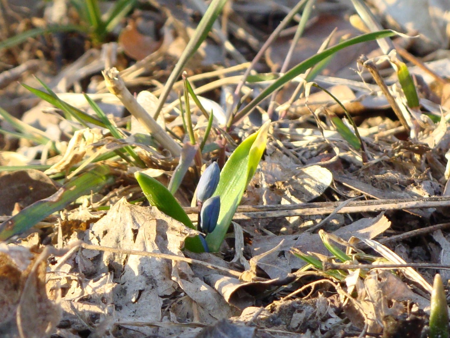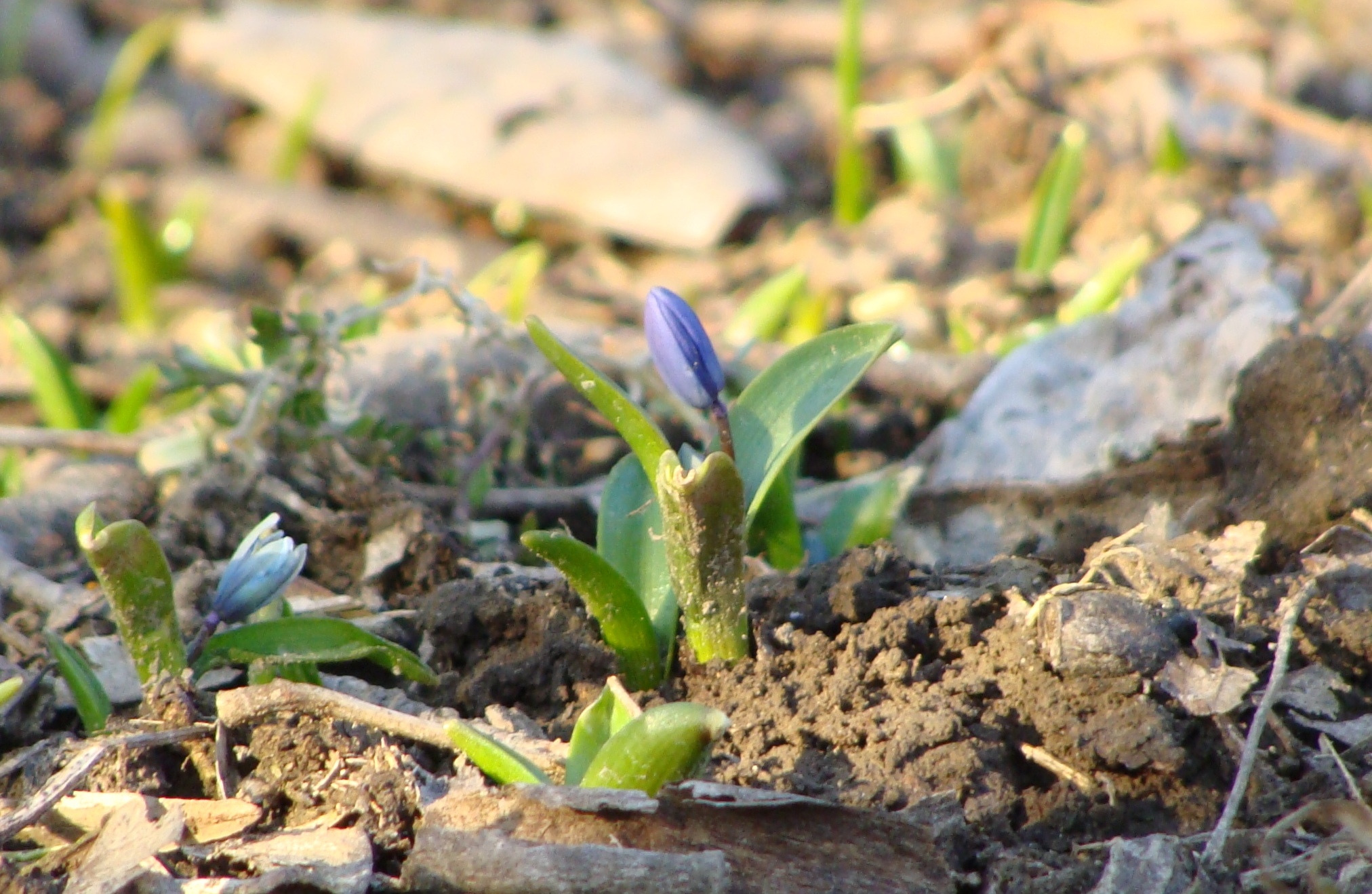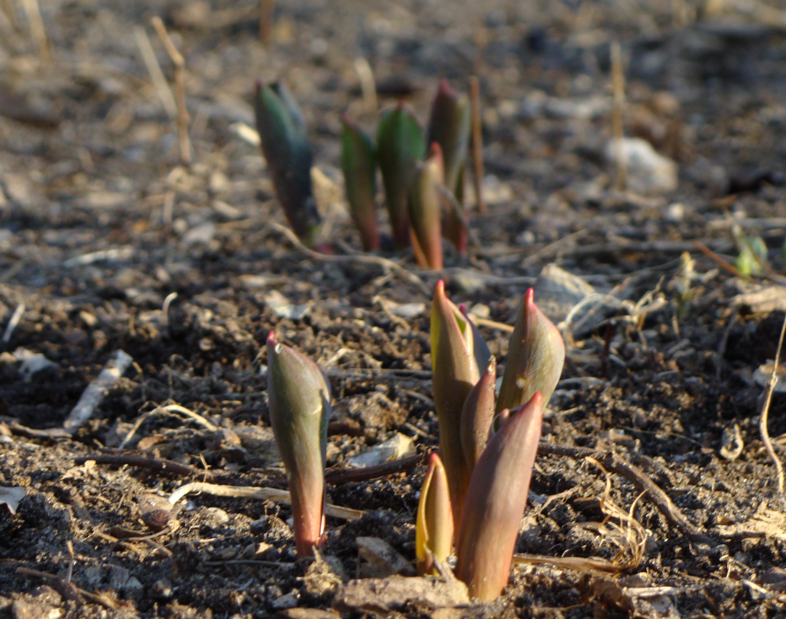 Note the lingering effects of the hard freeze on the top of this little “purple’s” leaves. She must have poked her head through the ground while the harsh winter was still in full rage.