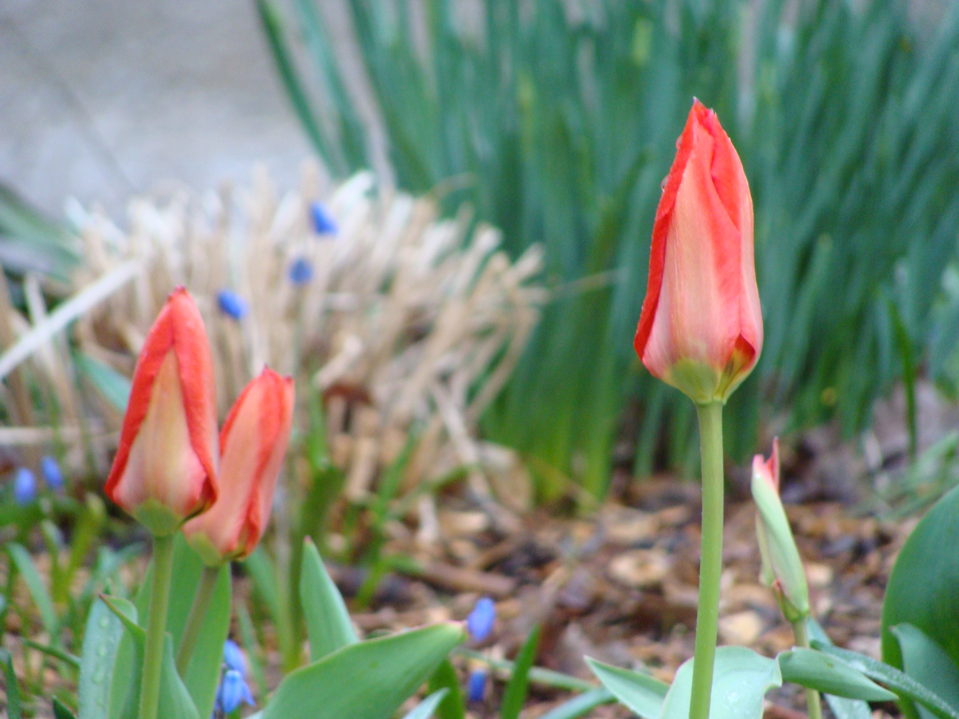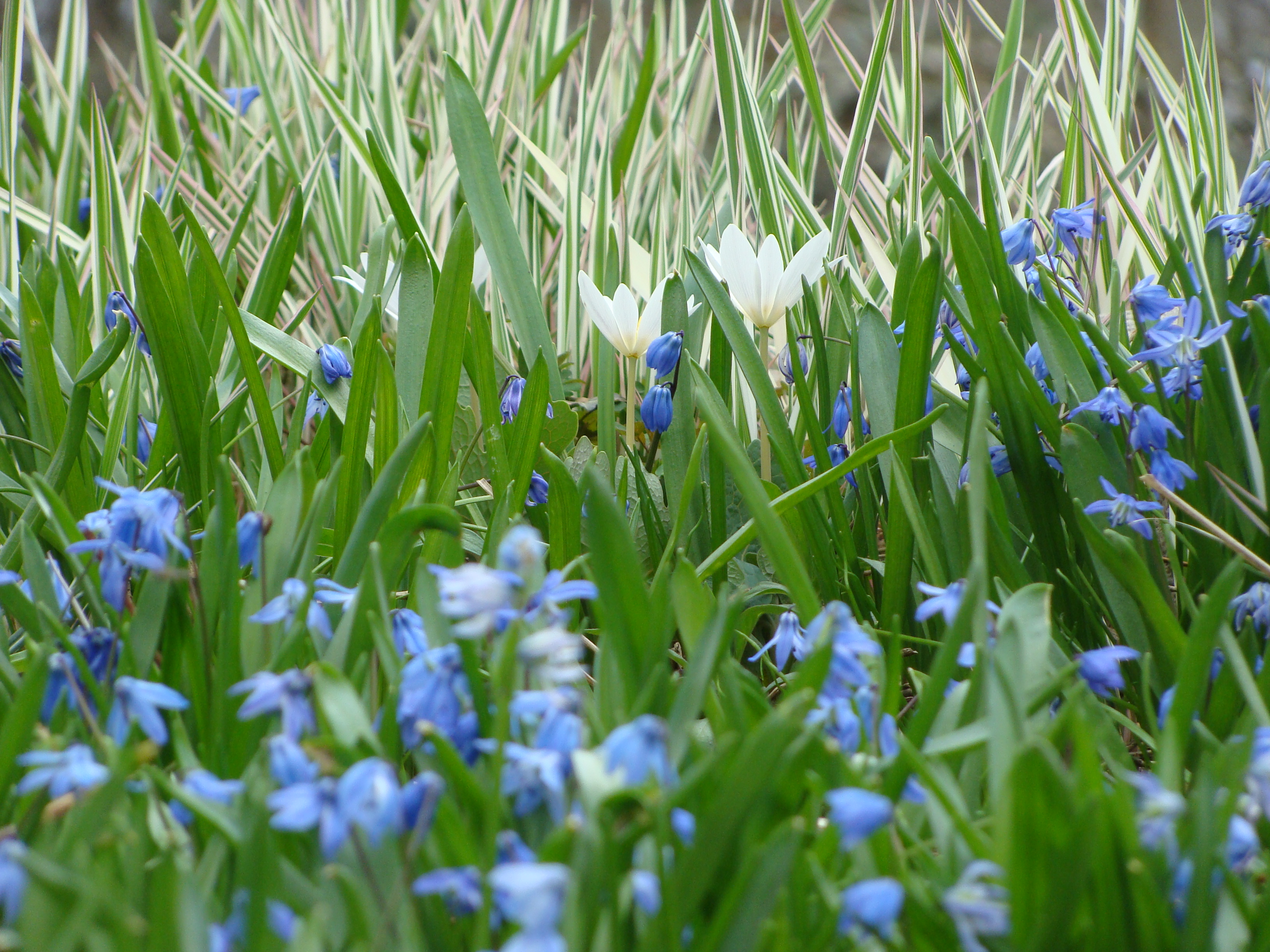 The traditional spring cast of Daffodils, Tulips and Grape Hyacinth come into their own…