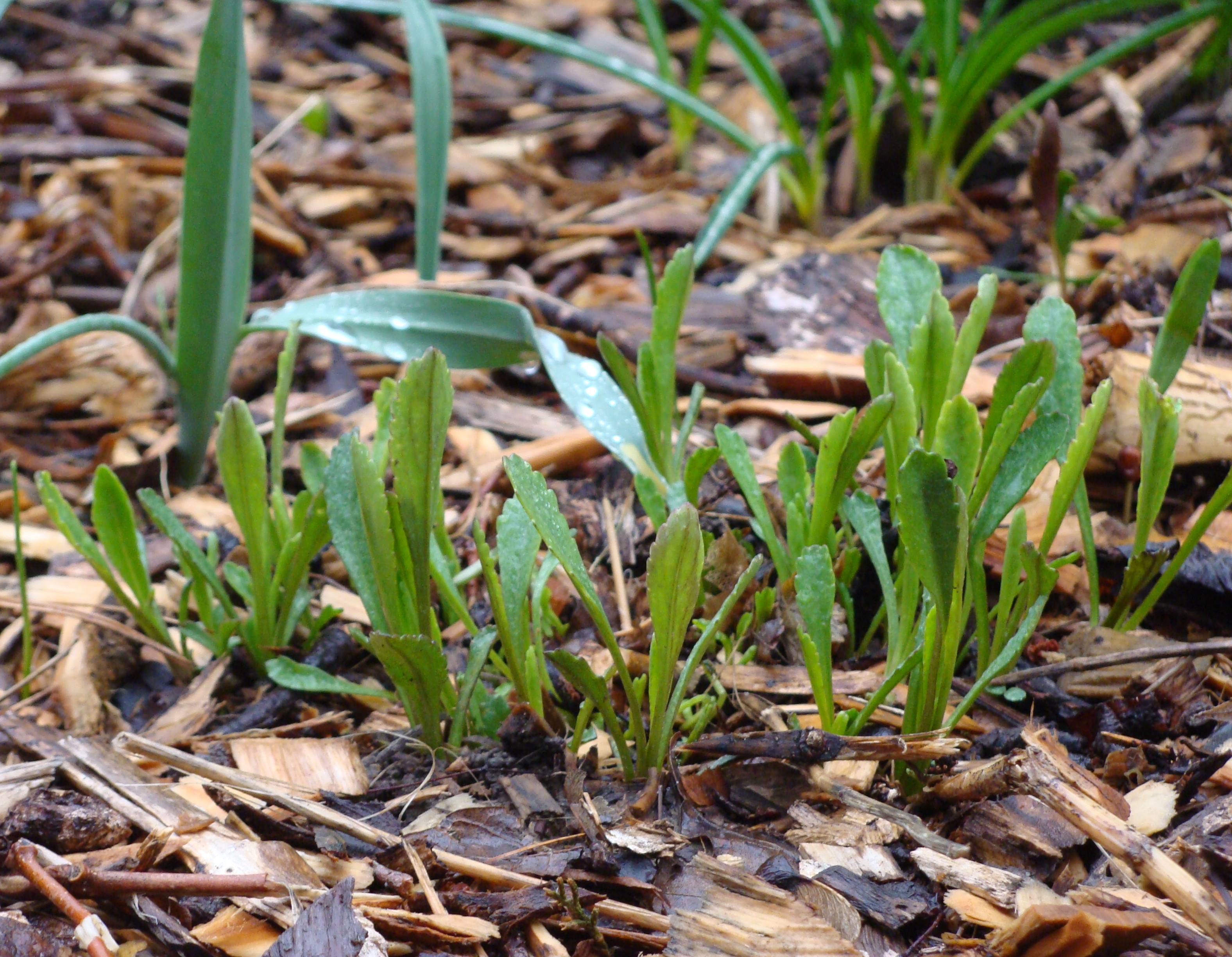 The early gang of root perennials comes up and shows who survived the severe winter.