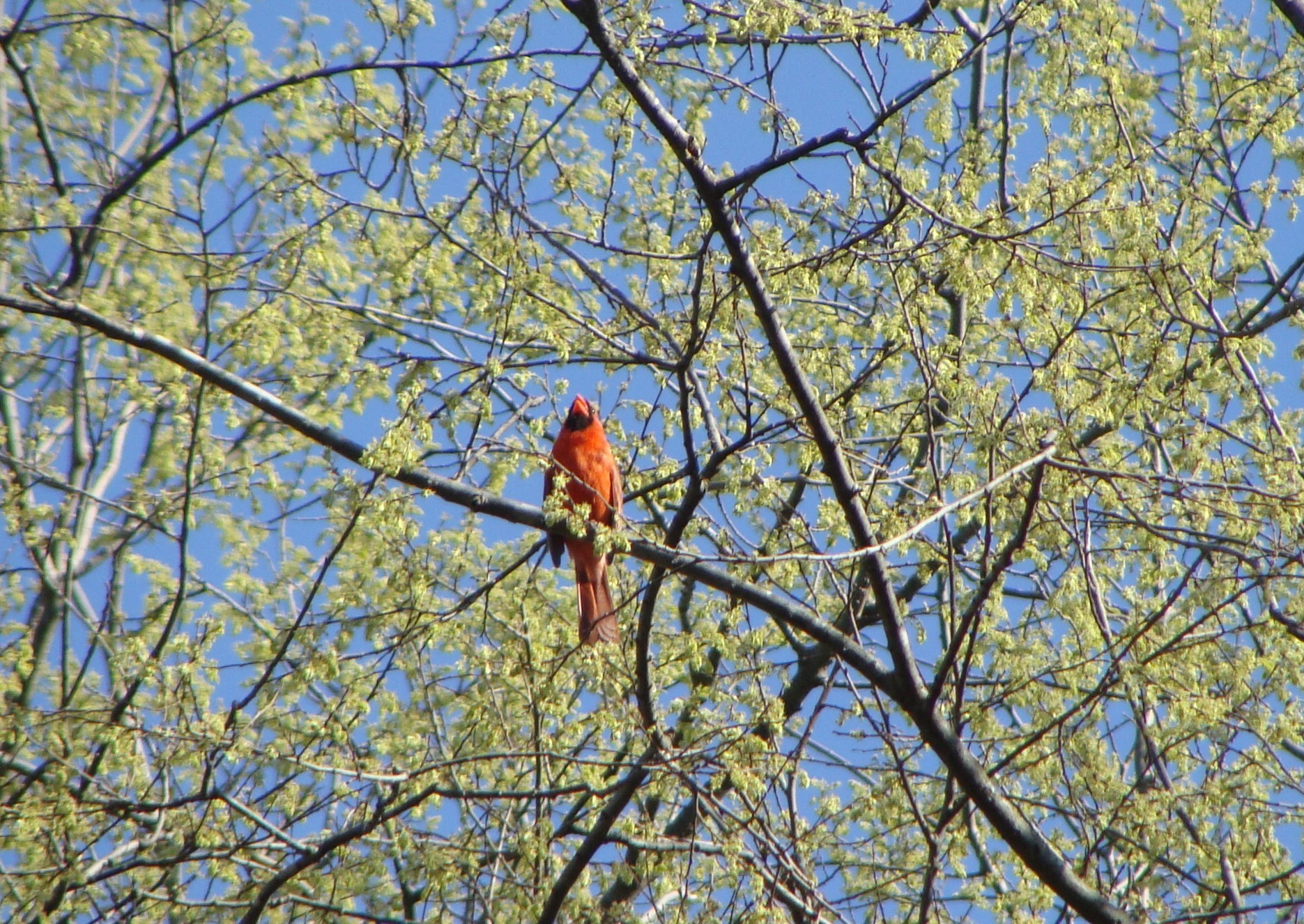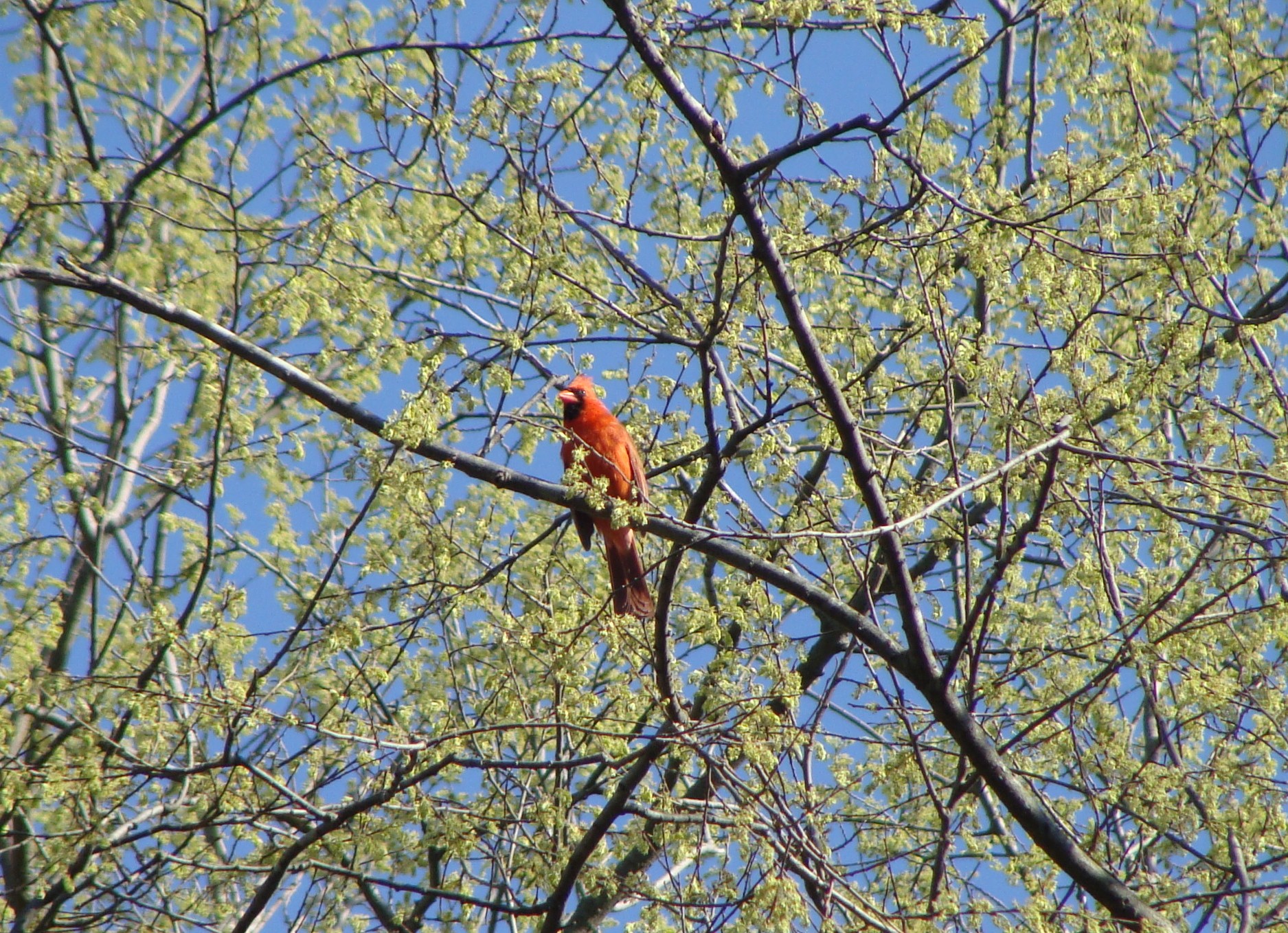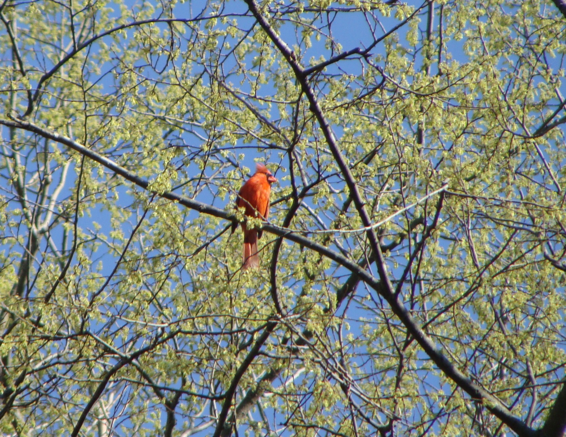 In fact, this very cardinal is captured on the iphone singing his song immediately before and after these pictures were taken. Sing he does. Boy Howdy! The cardinals are singing this spring! But the tree is in its early stages of leaf today. By next week it will be in full leaf. I’m sticking with the plan to keep the photographs current and show the gardens in real time. Plus, now that I’ve discussed this, I will quit thinking about it, and actually do it. Are you that way too?