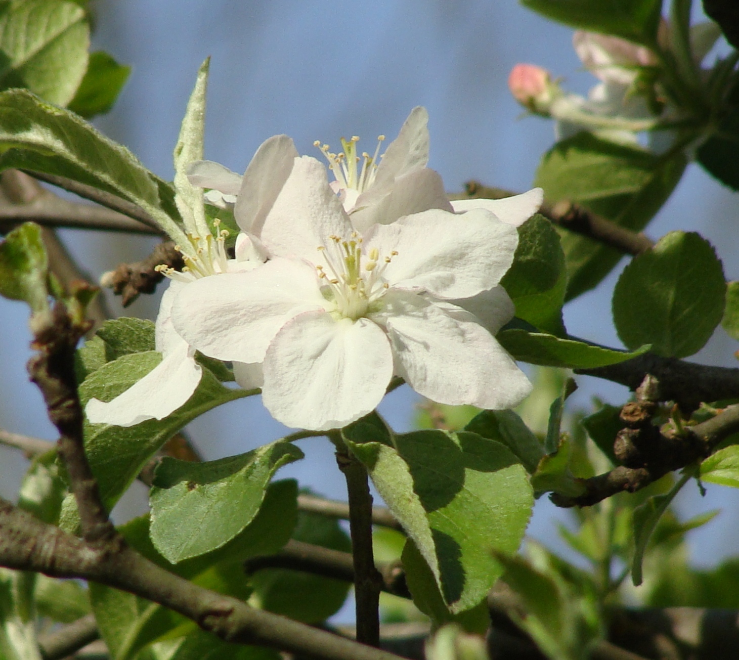 And given that you, like me, just can’t get enough of this weather, we might as well stroll over to the apple tree where the blossoms of a single tree present themselves in a variety of poses.