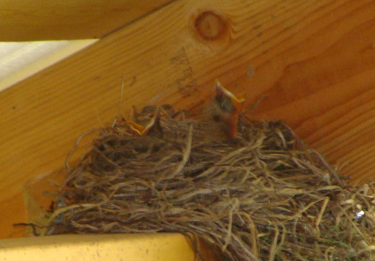 Thanks. Kitty appreciates your support, I’m sure. It’s a good camera but not fancy. The “zoom” on these pictures is me standing on a ladder about 10 feet away from the nest. You see, I have a deal with Momma Robin. I don’t bother her babies – She doesn’t poke my eyes out. We get along fine. 🙂