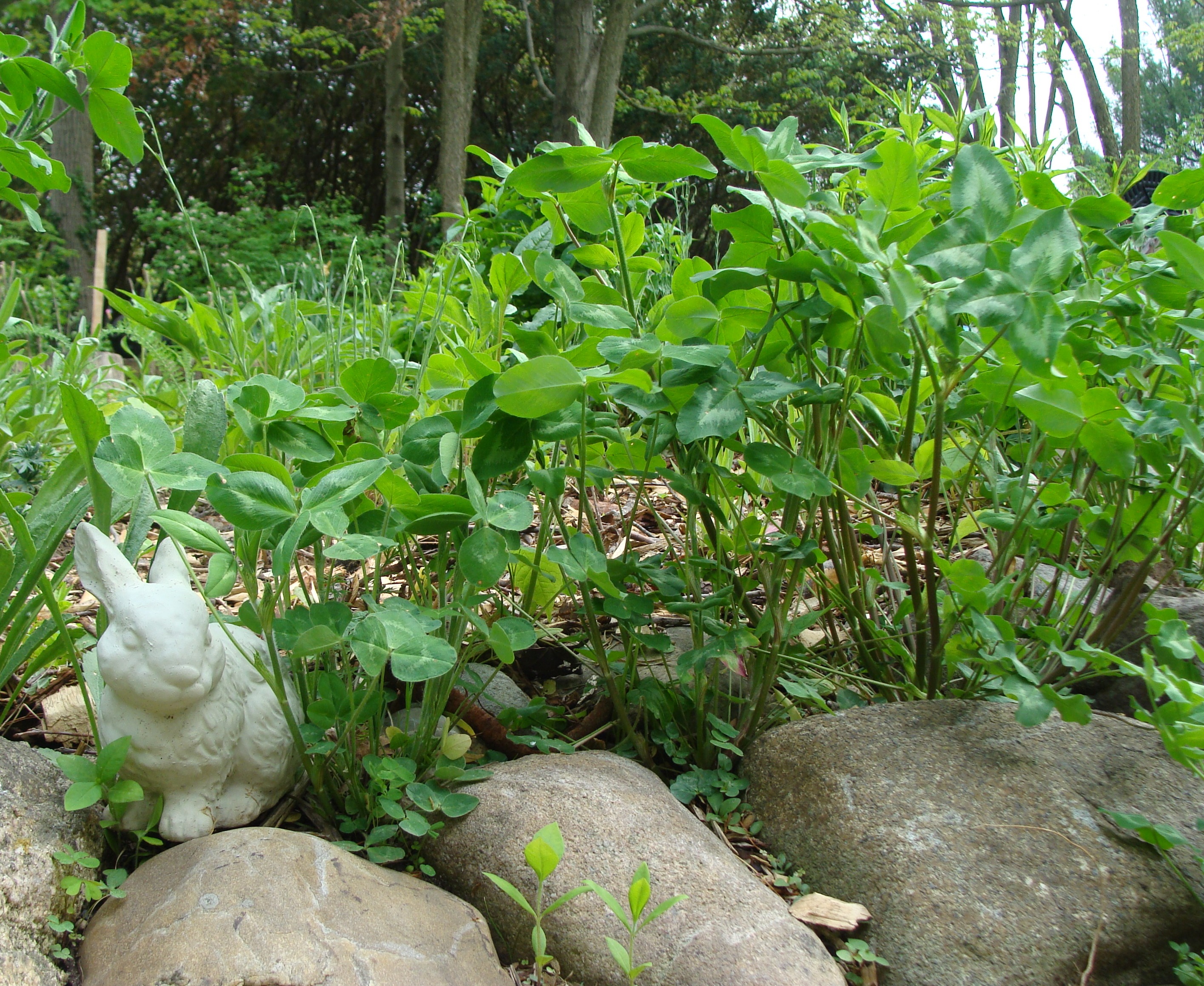 Bunny is so happy. She looks out from amidst the clover and beams at her friends.
