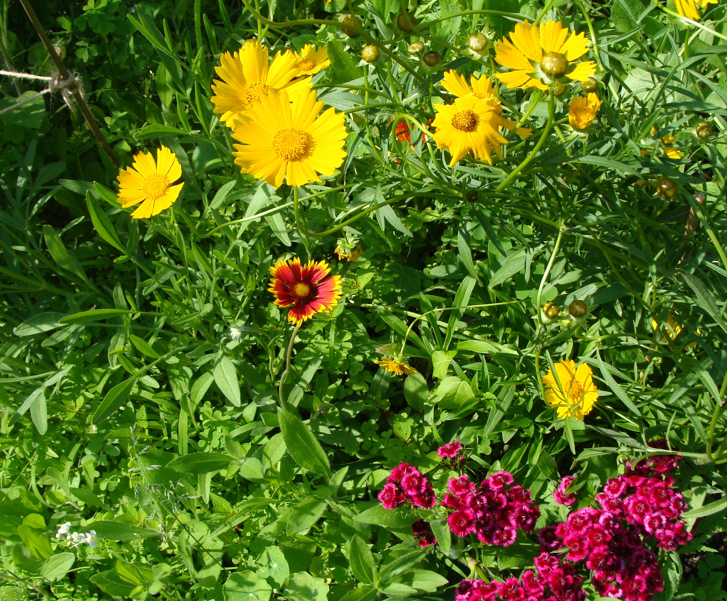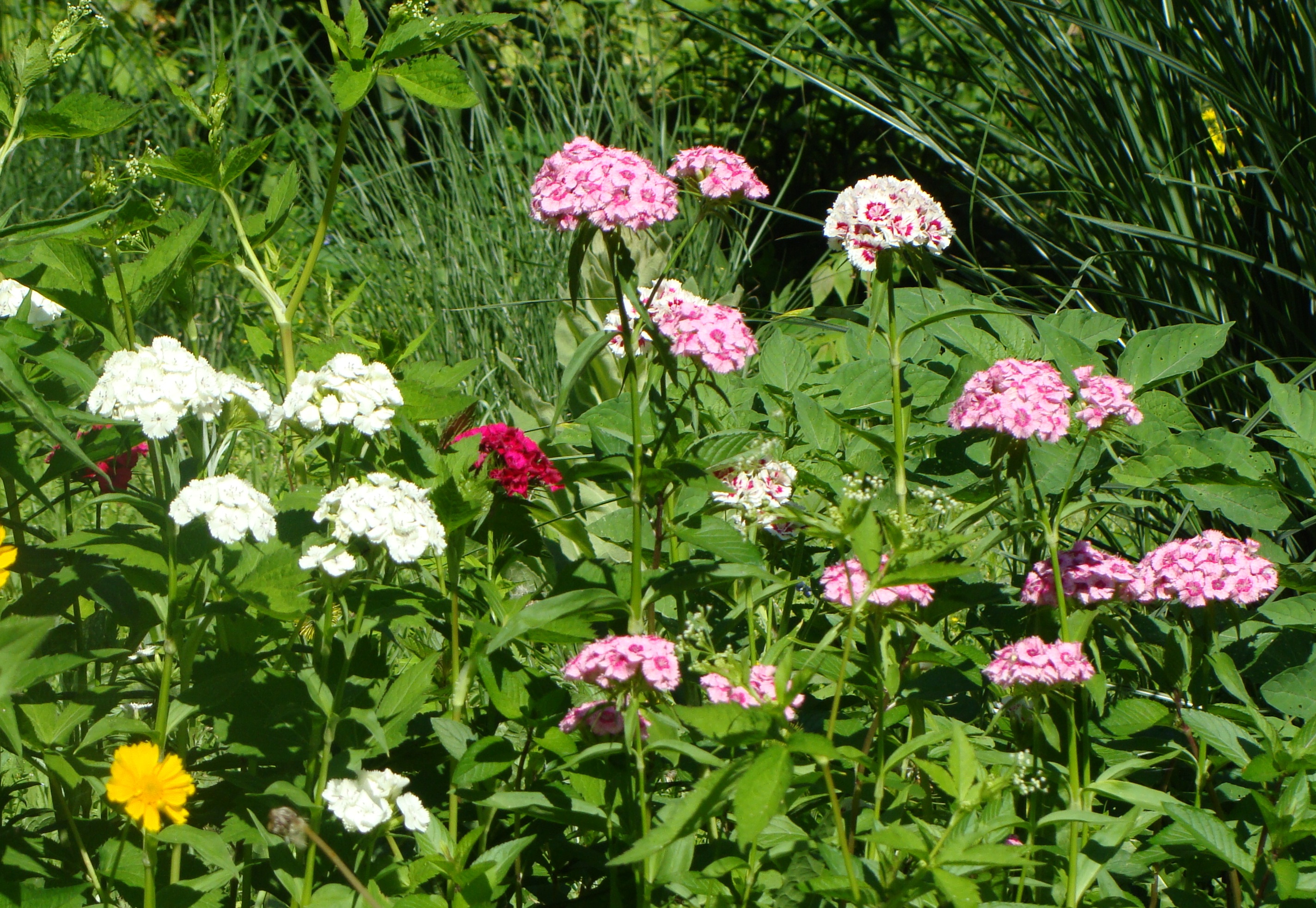The flowers she came here with are passing on. Dianthus and coreopsis are fading.