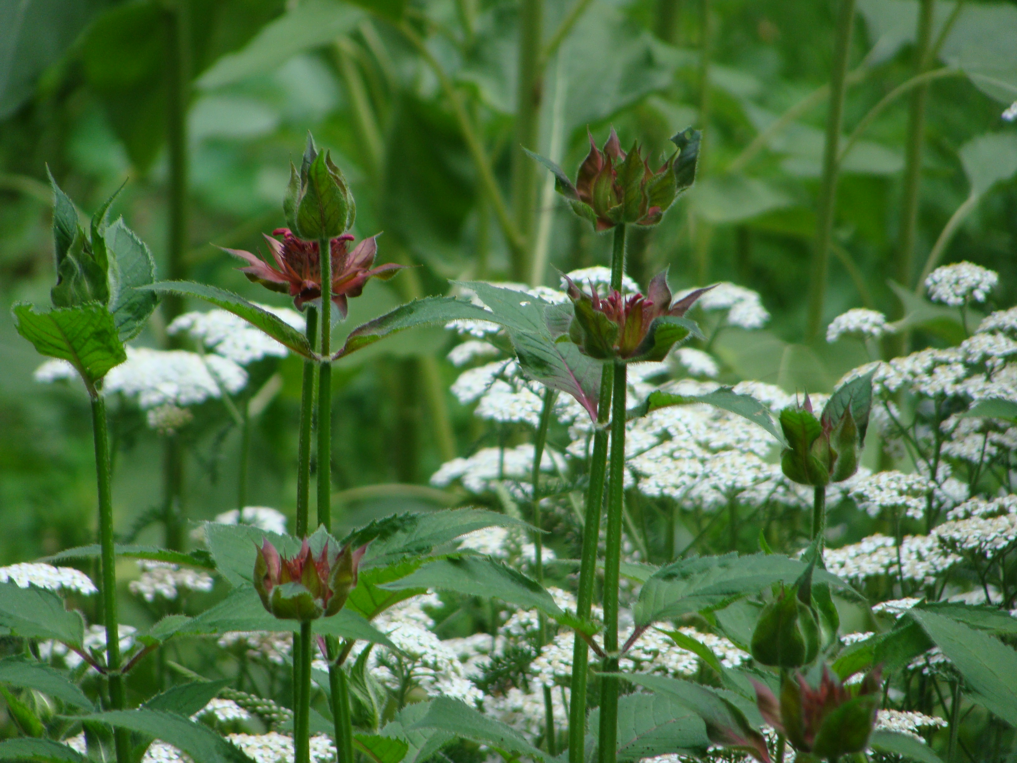They look to Bee Balm.Β Monarda Didyma.Β The scarlet beauty.Β Bee Balm is one of the oldest plants in the garden.Β Something about Bee Balm’s understated, color focused performance is captivating to all the members of the garden.