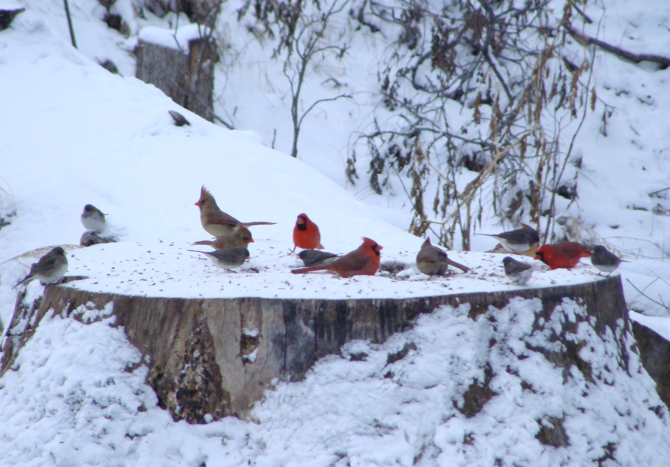 It does make a great feeding station – an excellent bird community center in the winter. We get a real feel for the social construct of the bird world watching them interact on the stump. e.g. the other birds leave when the blue jay shows up. I hated to cut down the Poplar, but love the sun and make good use of the stump. Cheers. 🙂