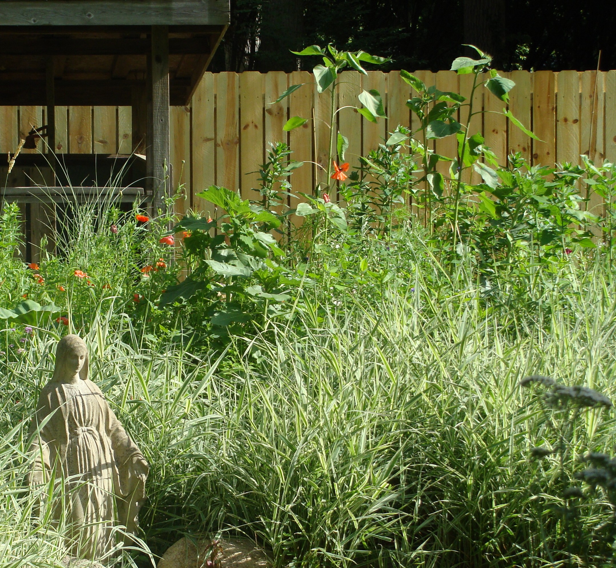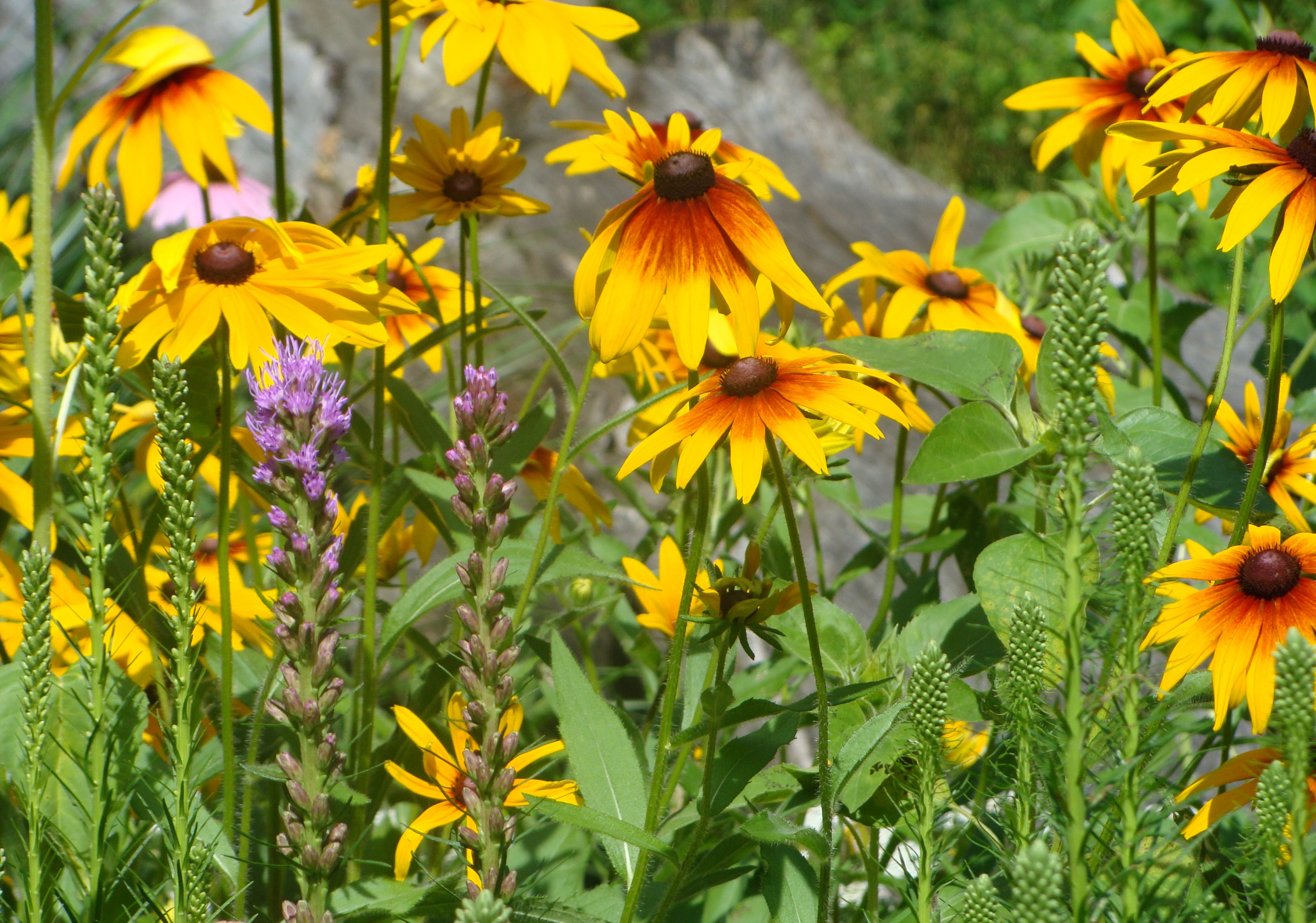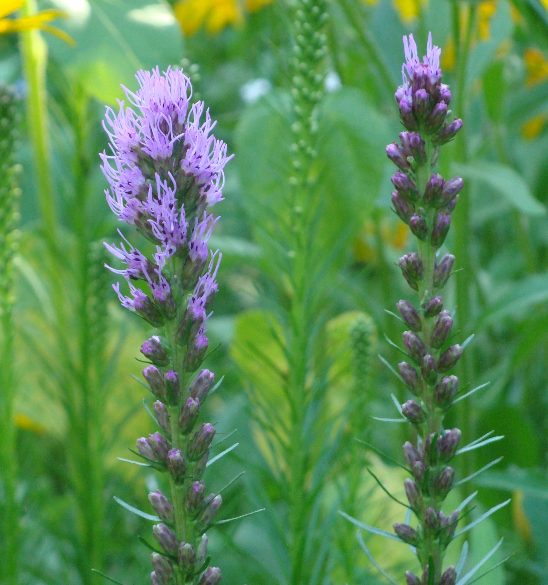 I have had volunteer sunflowers from the birdseed. I am always happy to see their bright shiny faces. In the vegetable garden there is no competition for glory, they grow in harmony. I’m familiar with Gloriosa Daisies but not Liatris, thank you for the introduction. I loved your story.