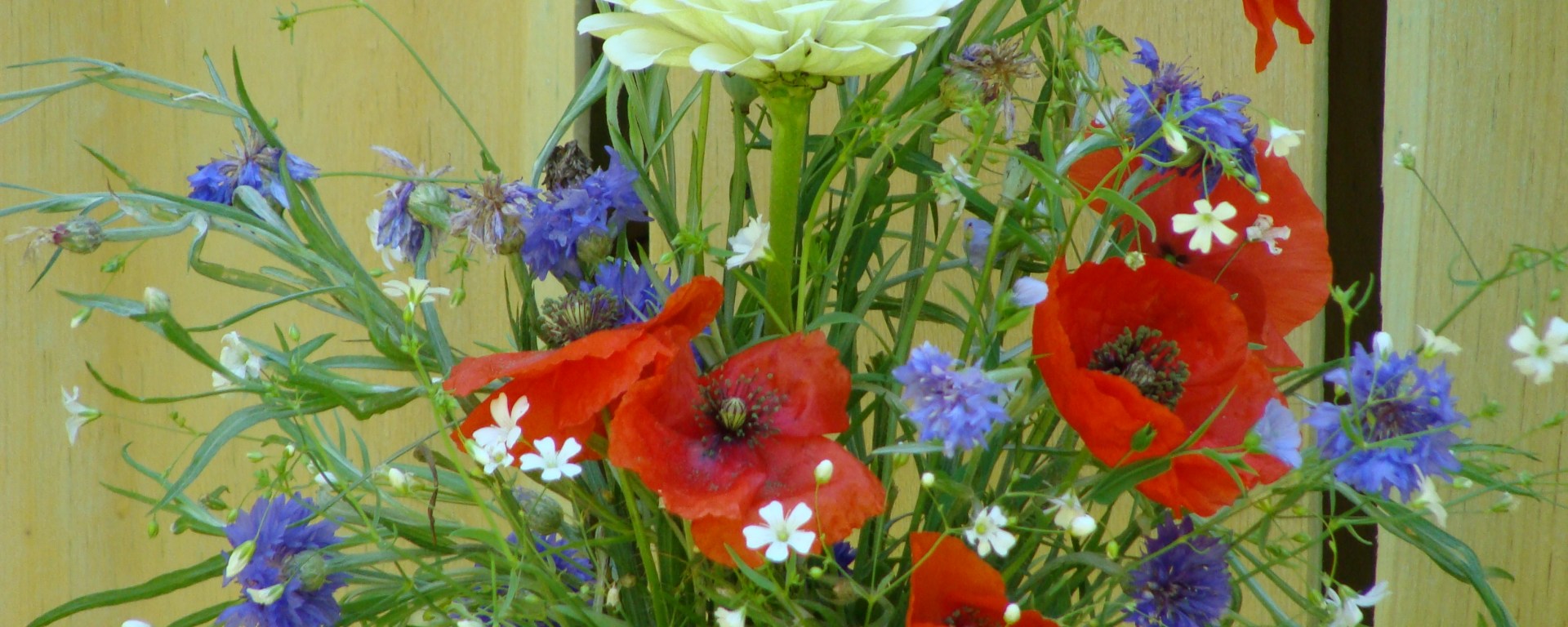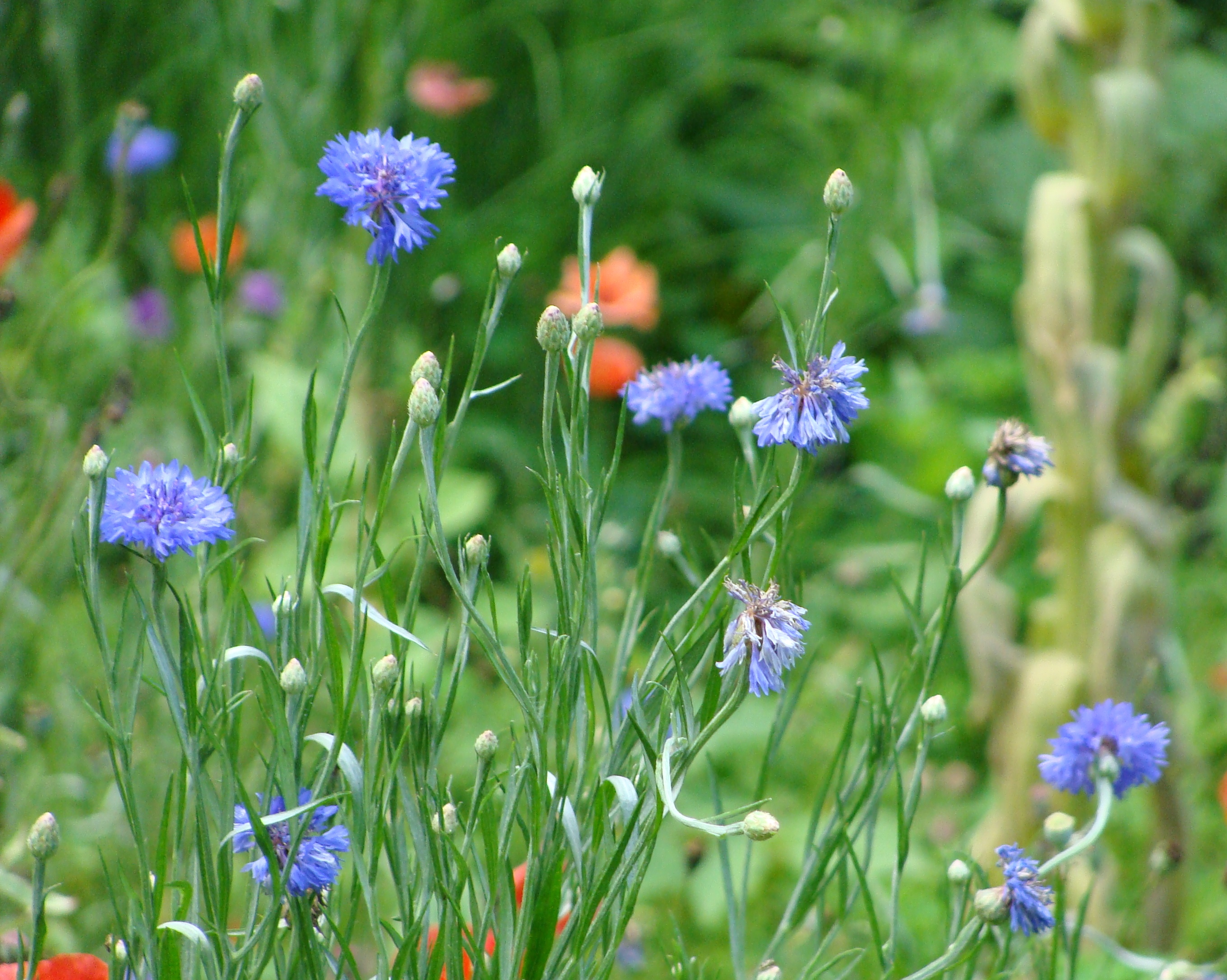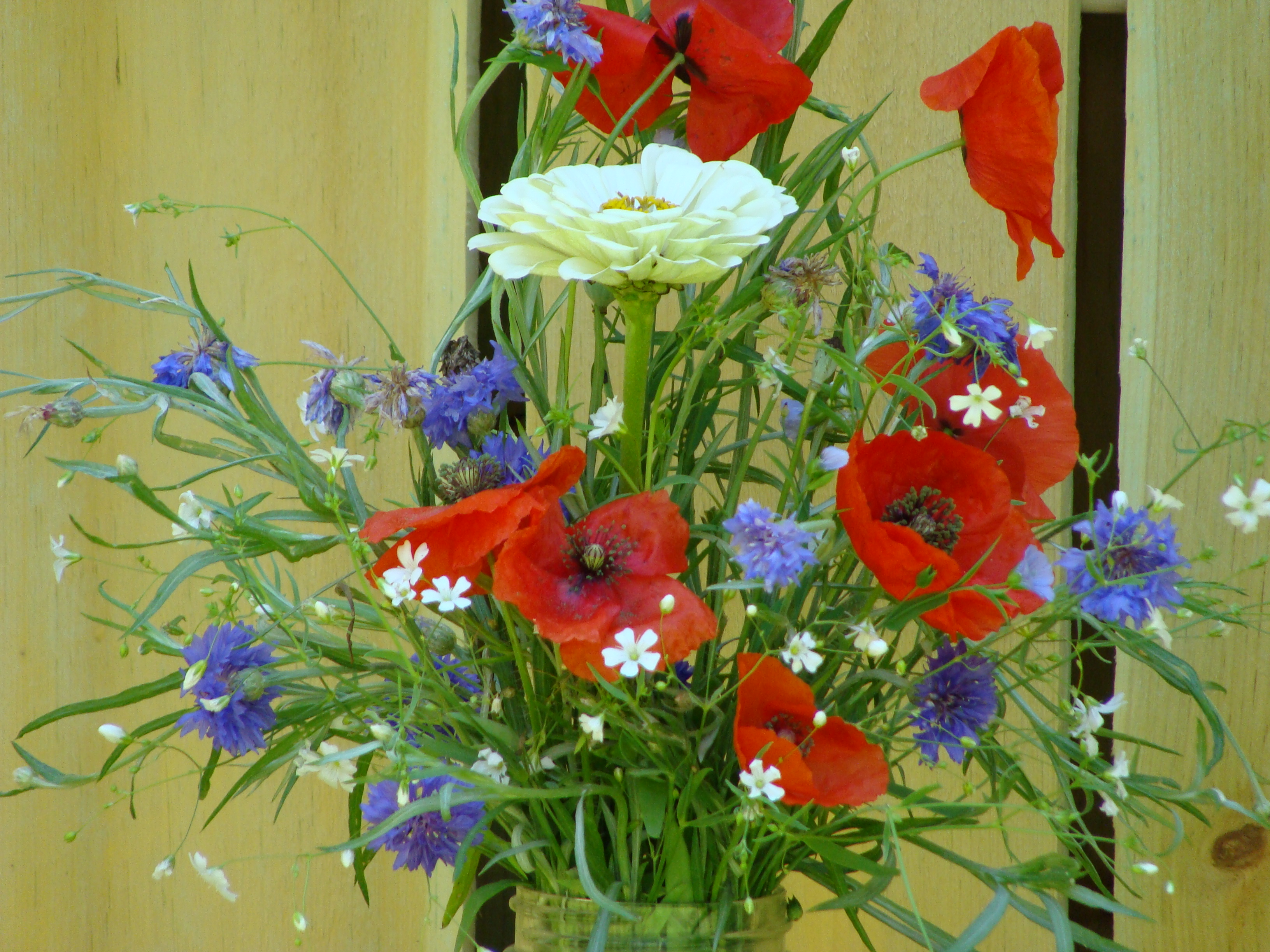 So, looking closely, the gang could find some blue, but it didn’t exactly jump out and bite them. And it really wasn’t blooming in a position to create a glorious patriotic vision of red, white and blue. Well, okay, the cornflower and poppies were trying, but it was hardly Old Glory.