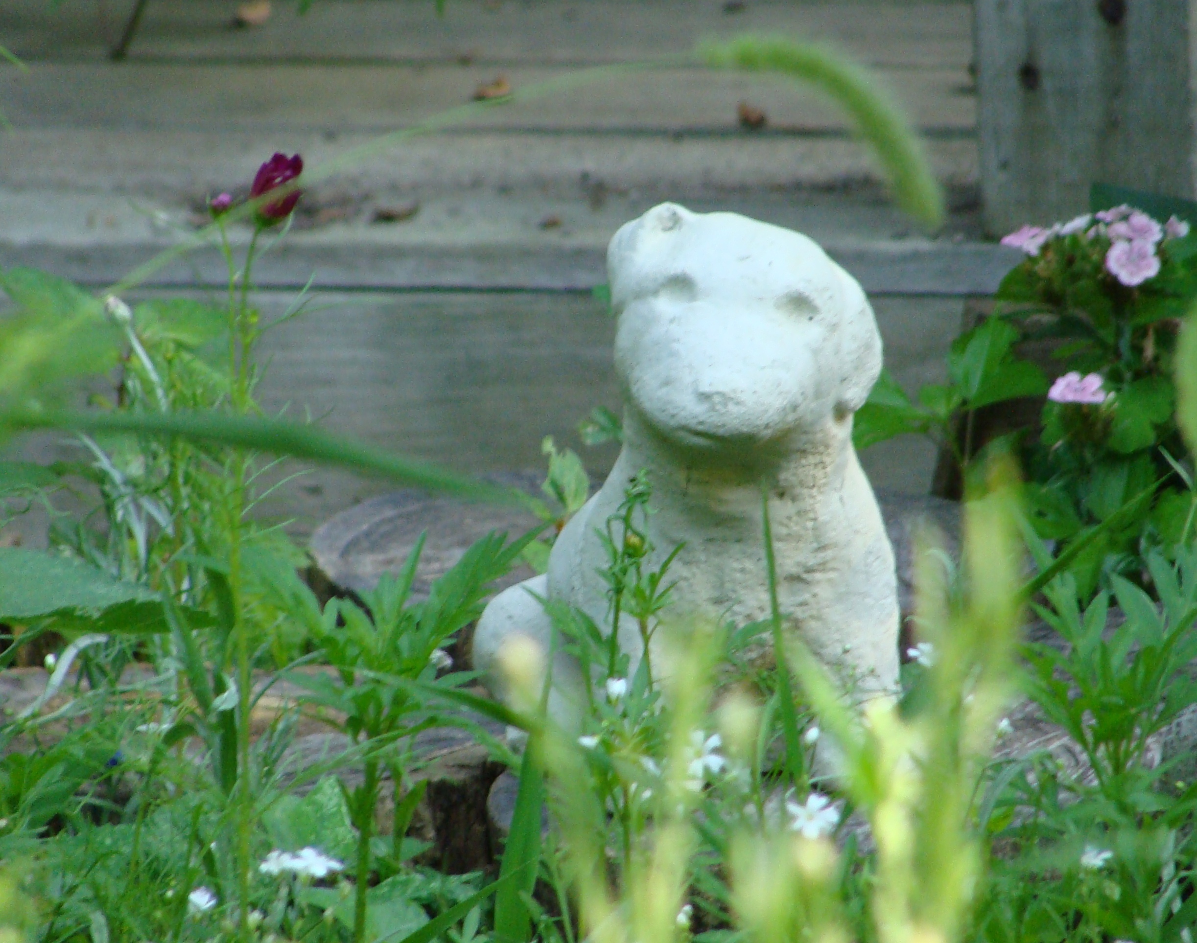It all got started on Friday, the Fourth of July. Stone Bunny doesn’t pay much attention to human affairs but she knows enough to aware of Independence Day. Oh yes! She has heard all about freedom and self-government. She can’t imagine being a stone garden critter in a country where the people didn’t get to choose how they live their own lives. And she could hardly miss the big holiday, what with all the firecrackers and bottle rockets going off in the neighborhoods around the garden.