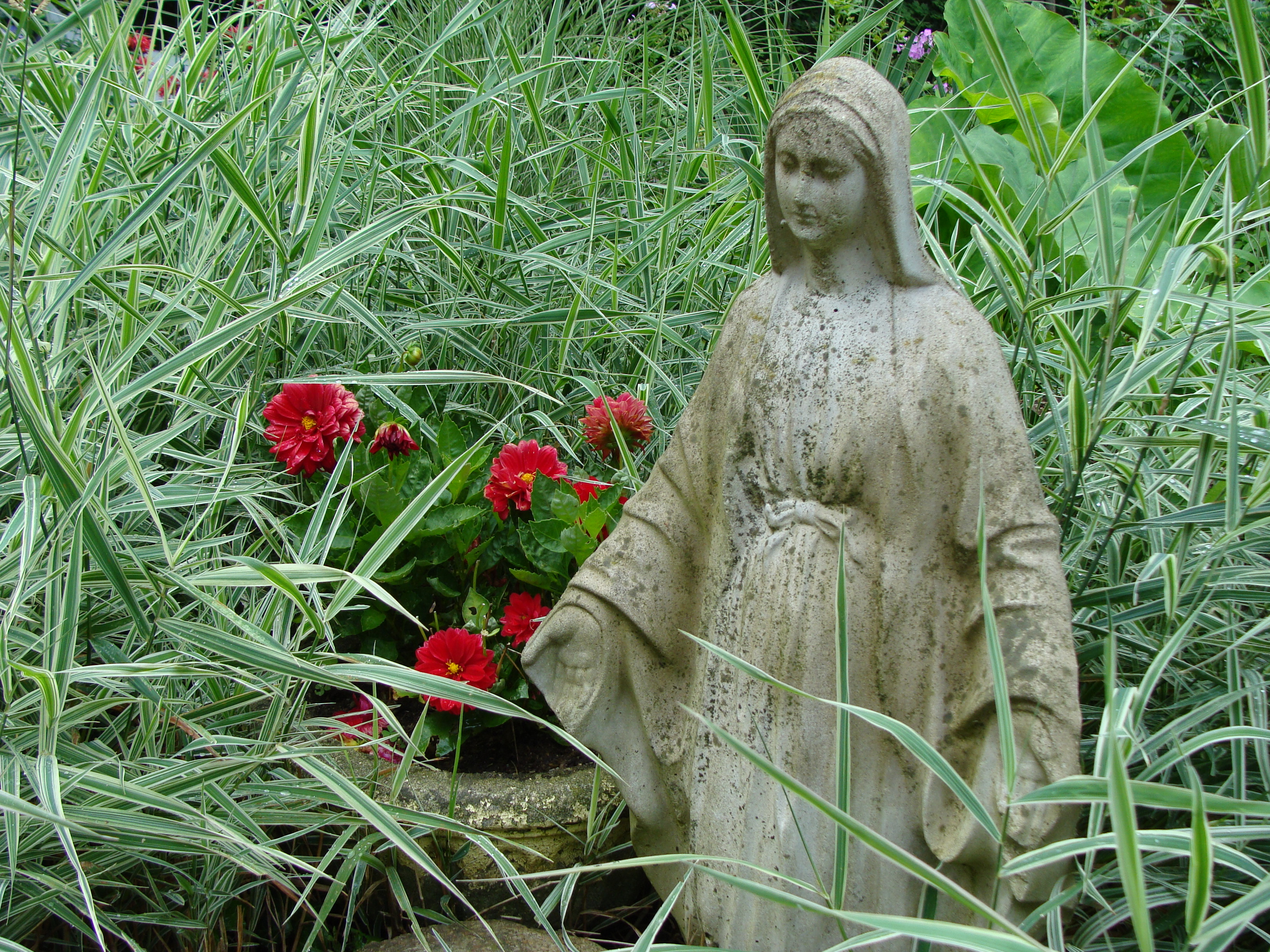Mary has been enjoying some pretty red dahlias in her pot.