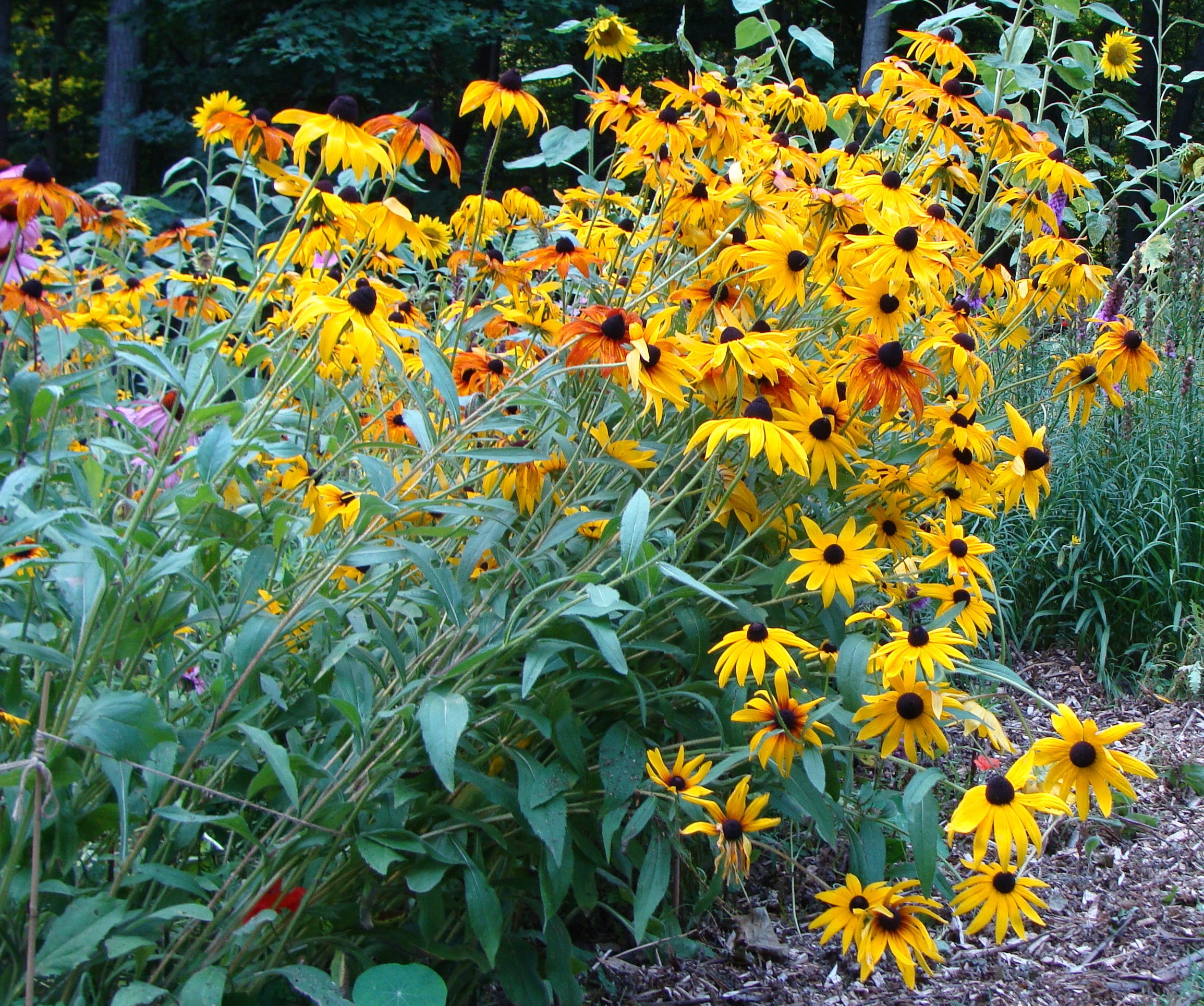 Thanks. Bee Balm – I usually let it fade until there is nothing but seed pod left, at which point they are looking quite rough and hardly gracing the garden with their majestic beauty. Then I deadhead them and collect the seeds. Truth be told, I probably deadhead too early for viable seeds, as I rarely get them to grow from the collected seeds. I’m always wanting to propagate more Bee Balm, but have mostly only succeeded in propagating them by giving them room to spread their roots (they are a mint, you know). Currently, we’re trying a couple other methods, with cuttings in soil and cuttings in water. We’ll see. One note – the key to Bee Balm in this humid climate is to give them plenty or air, lest they become mildewy. As you might observe in the pictures, I grow a very dense garden, but I make sure the Bee Balm can breathe. 🙂
