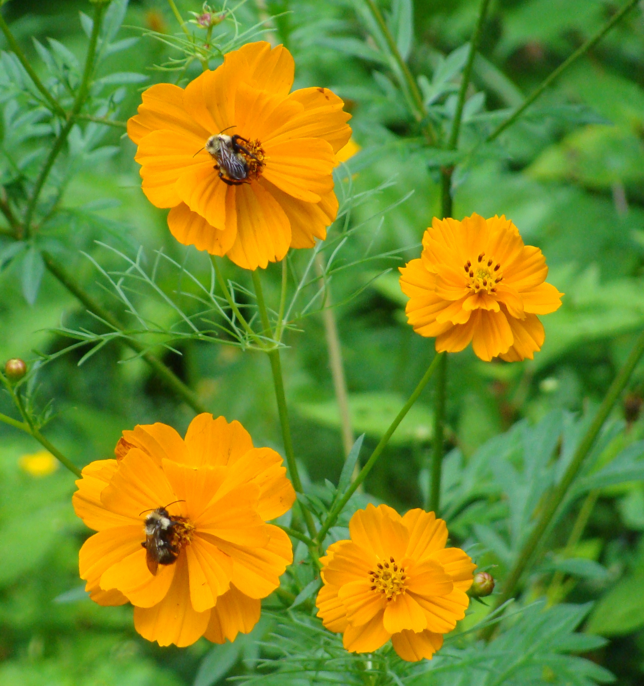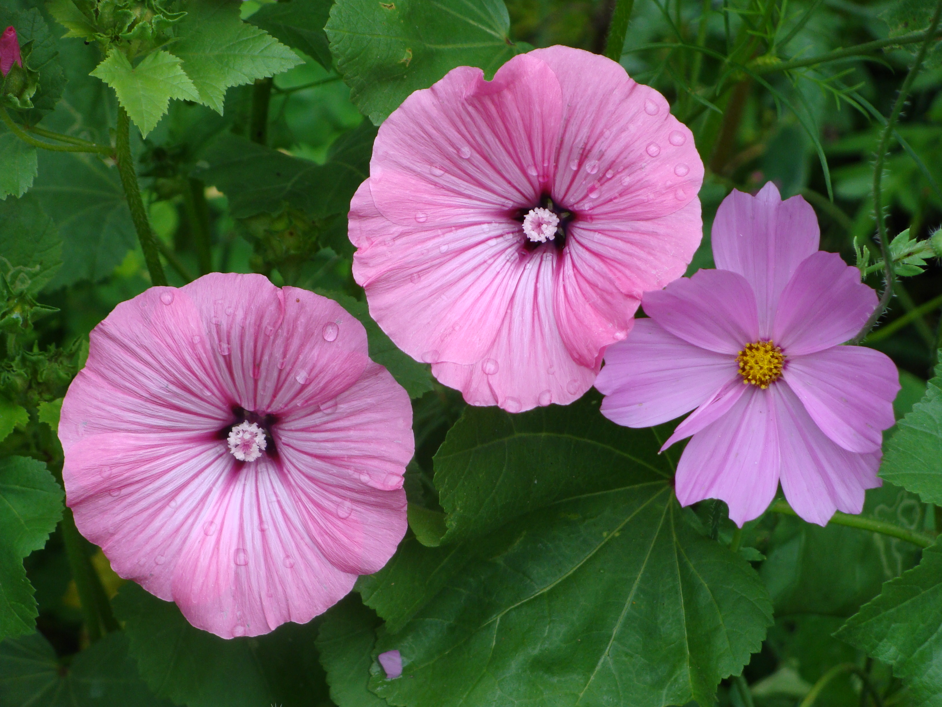 They appear to be incongruous with the heady summer season, though they seem to be sympathetic with the little pink Hollyhocks and Cosmos.