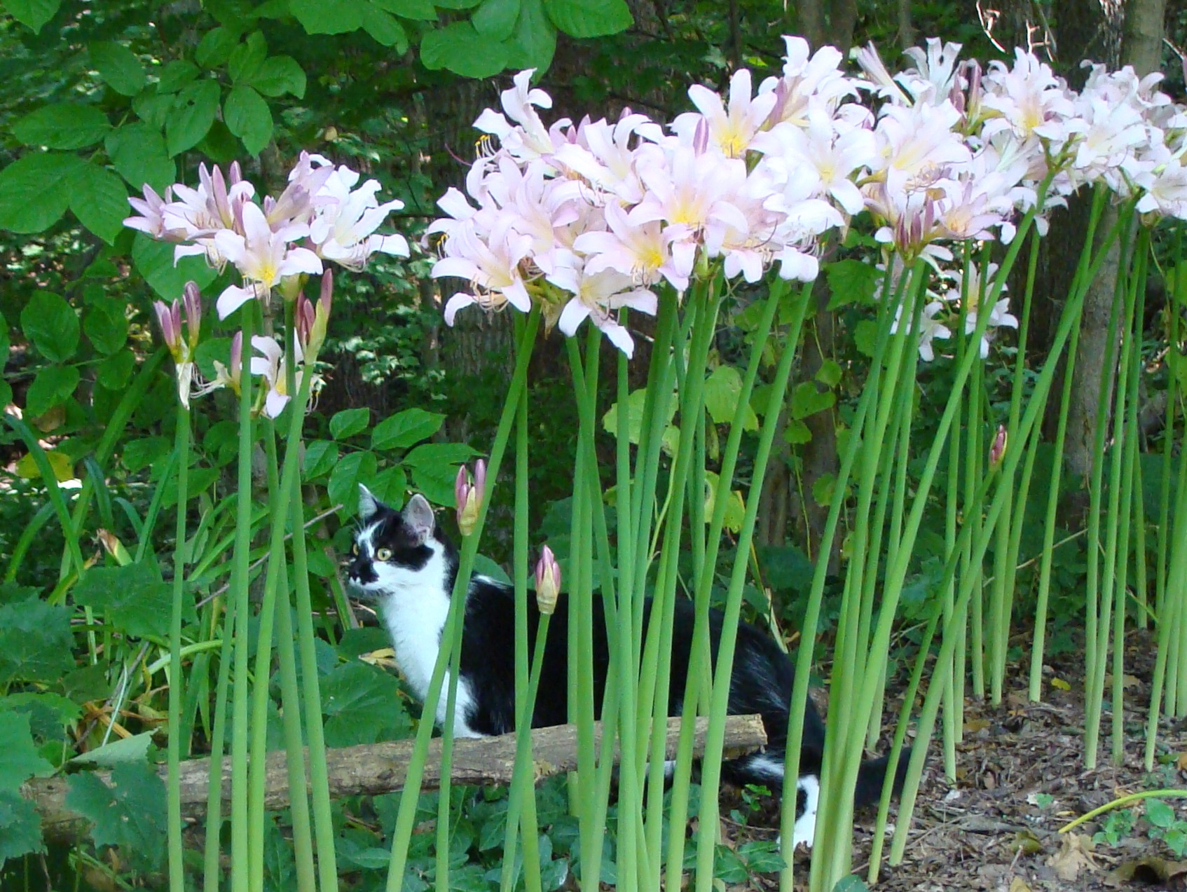 Beautiful lilies with personality all their own. They look like a chorus line in vaudeville . Start the music and watch them dance! As resurrection lilies they pop up unexpectedly, a welcome spectacle! Thanks for sharing, Jim. Blessings to you…