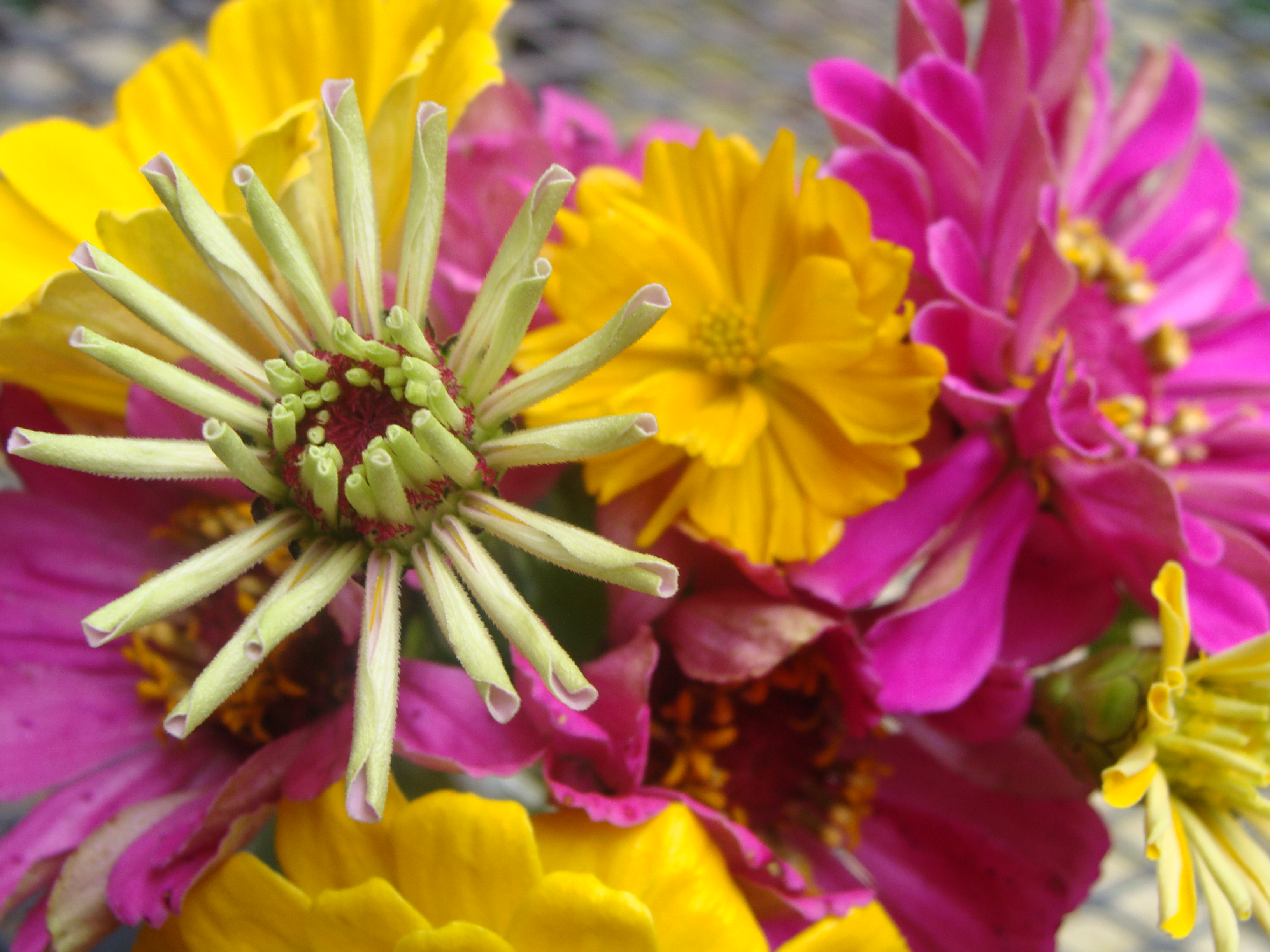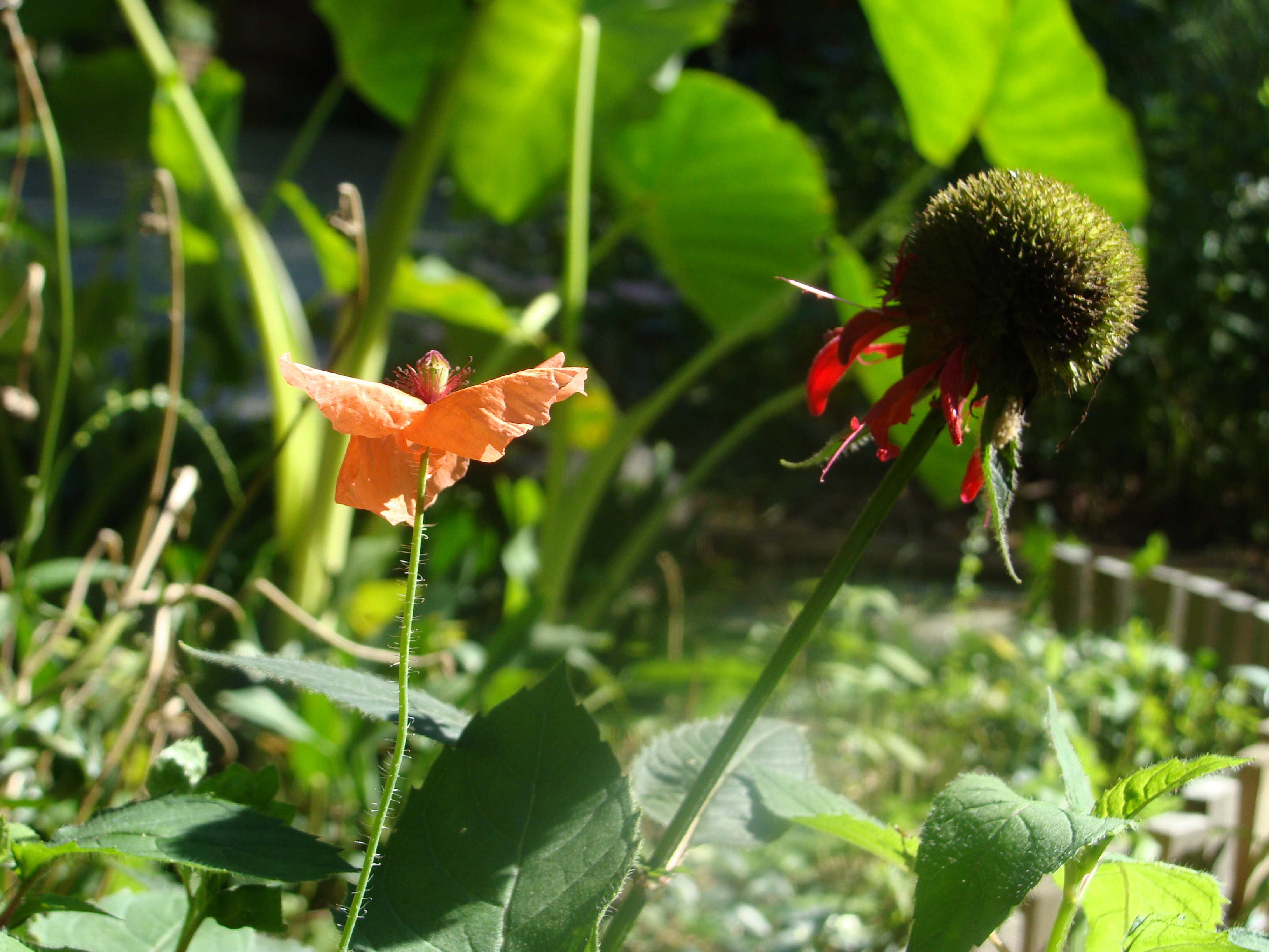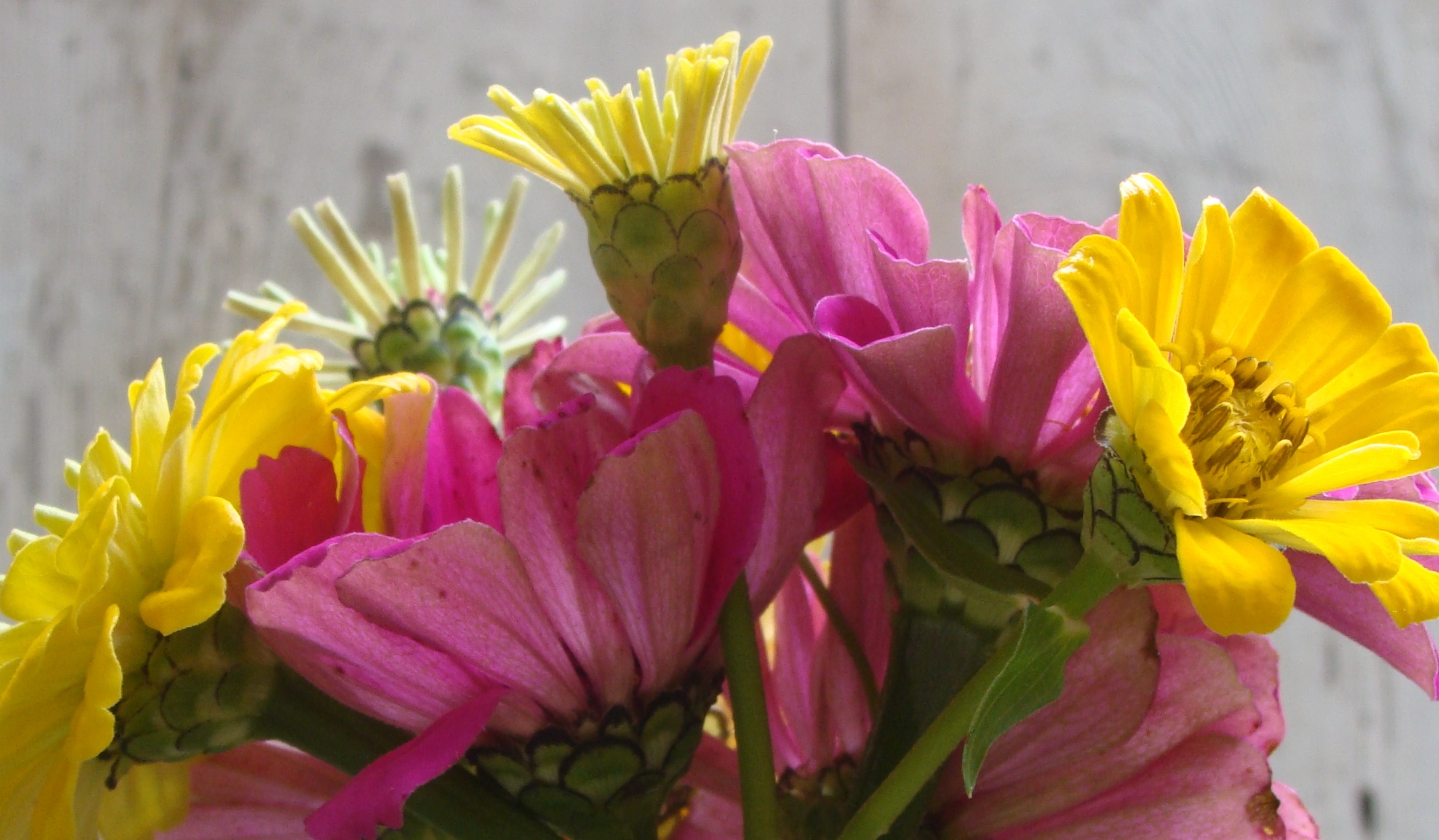 Hi Cynthia. In terms of blooms, we’re cranking into fall on the strength of zinnias, some orange wildflowers which I think are a form of magnolia, and good old geraniums. We also have a fresh crop of gloriosa daisies coming on. Maybe I’ll do a post on them in a few days. Mostly right now, though, the garden is matter of various textures and shades of green. Kinda cool. 🙂
