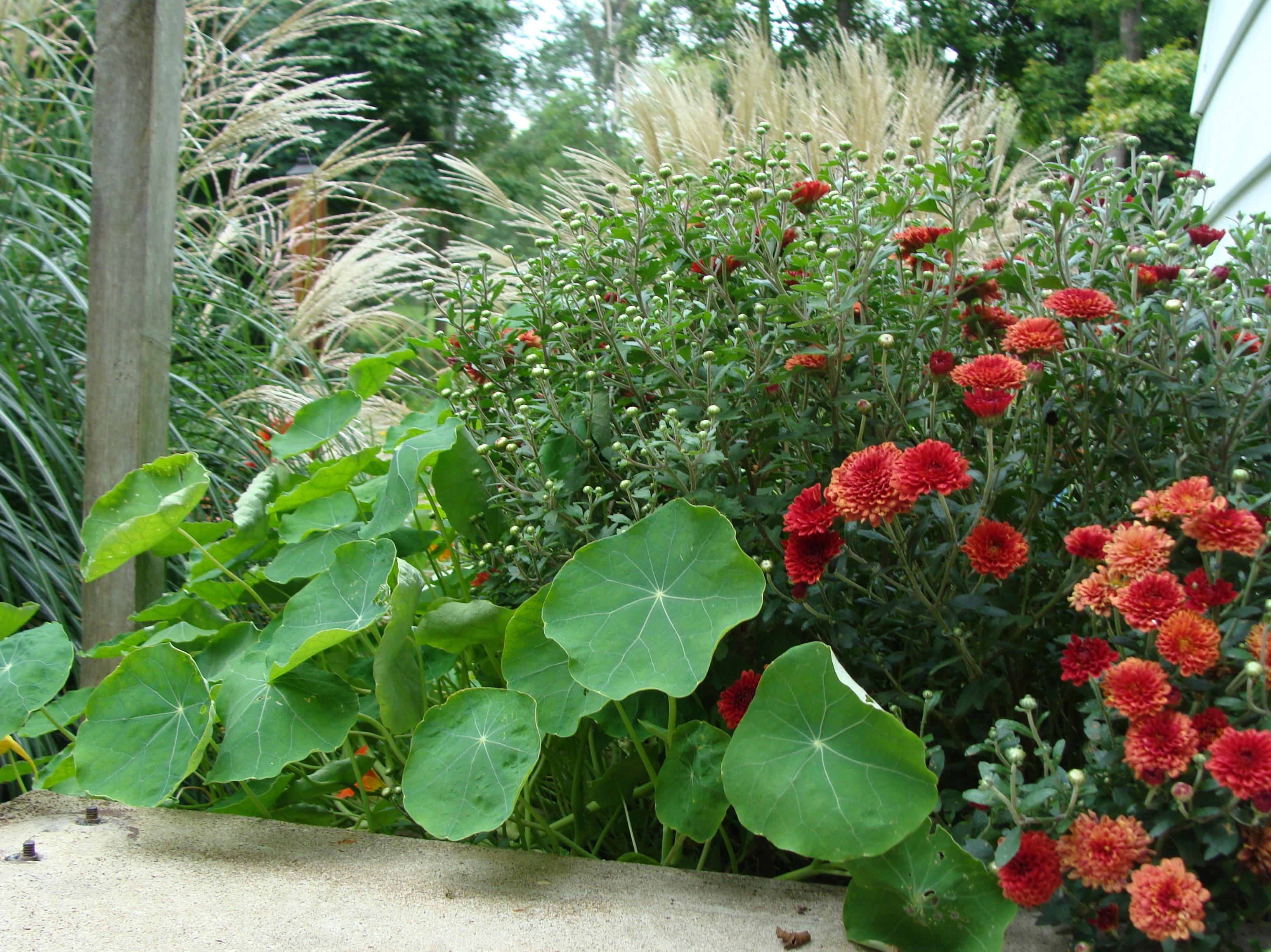 The nasturtia are on a roll, prepared to bloom right up to the first frost.