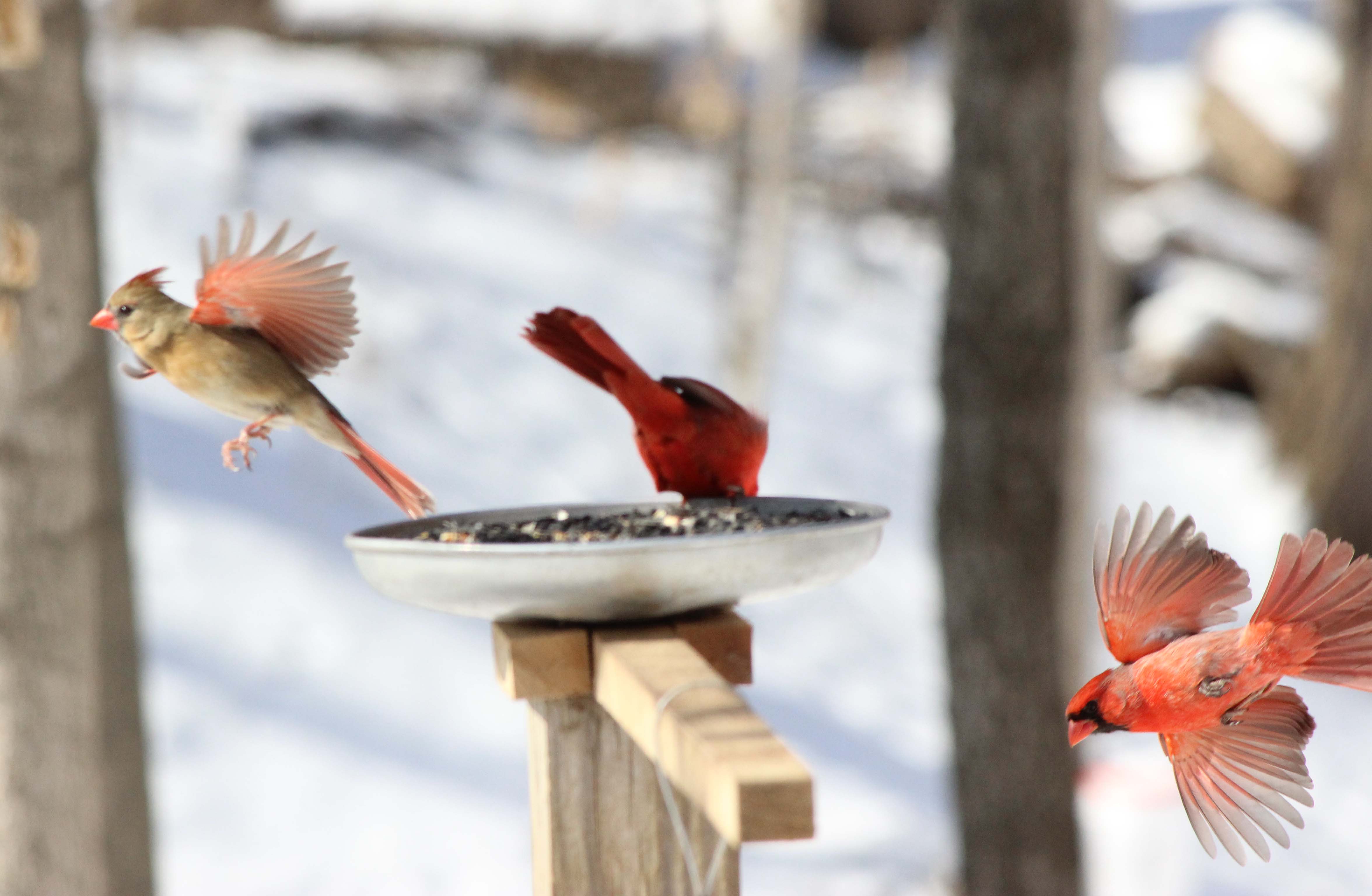 Thanks. The cardinals are a curious bunch. Sometimes the males all come together and the females all come together. Other times they come as a mixed group. Rather like humans. My favorite bird is the nuthatch but I think the female cardinal is the prettiest of the lot. So subtle and understated, yet packing those beautiful accents of color. 🙂