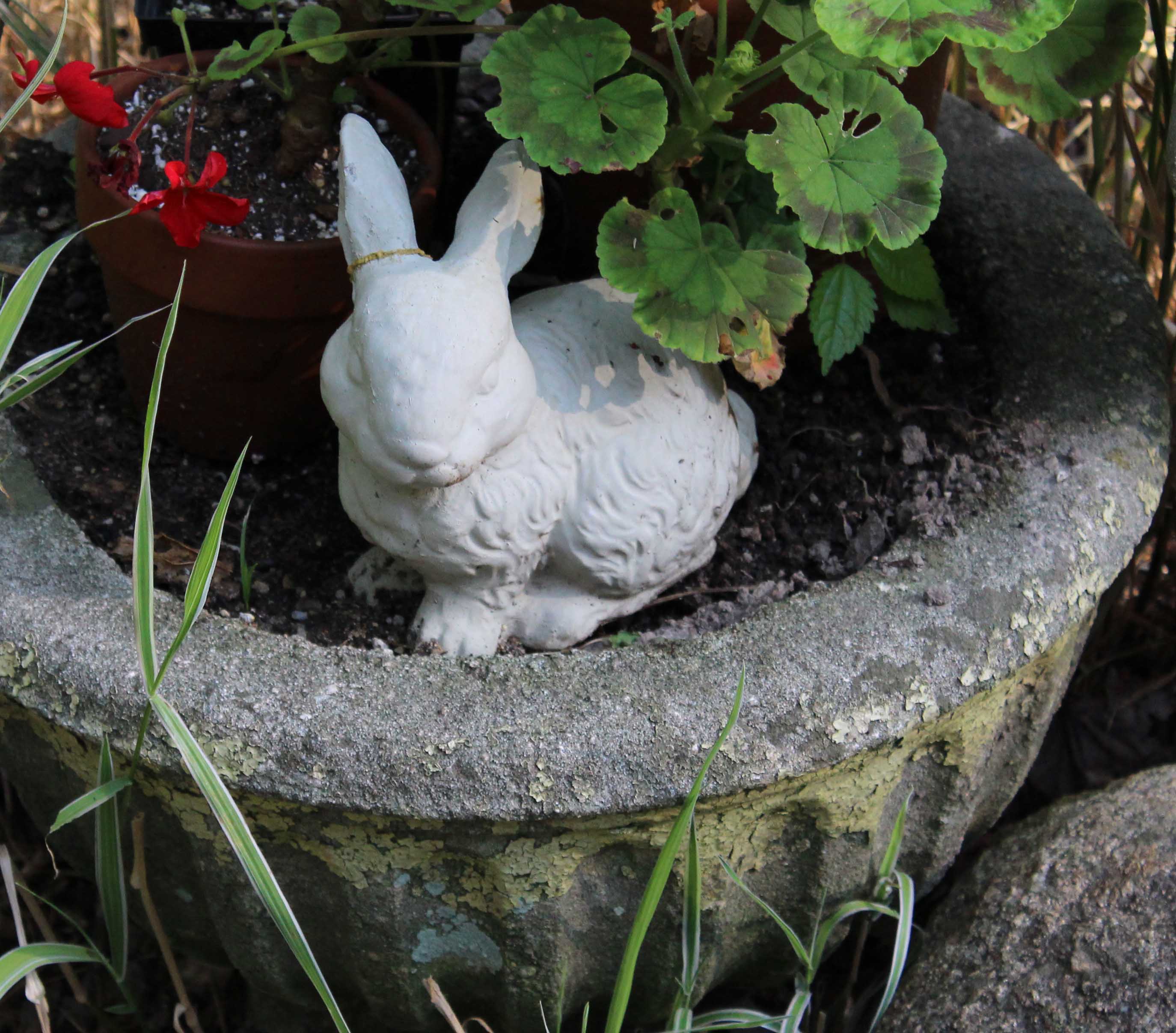 While Stone Bunny peers out from her planter.