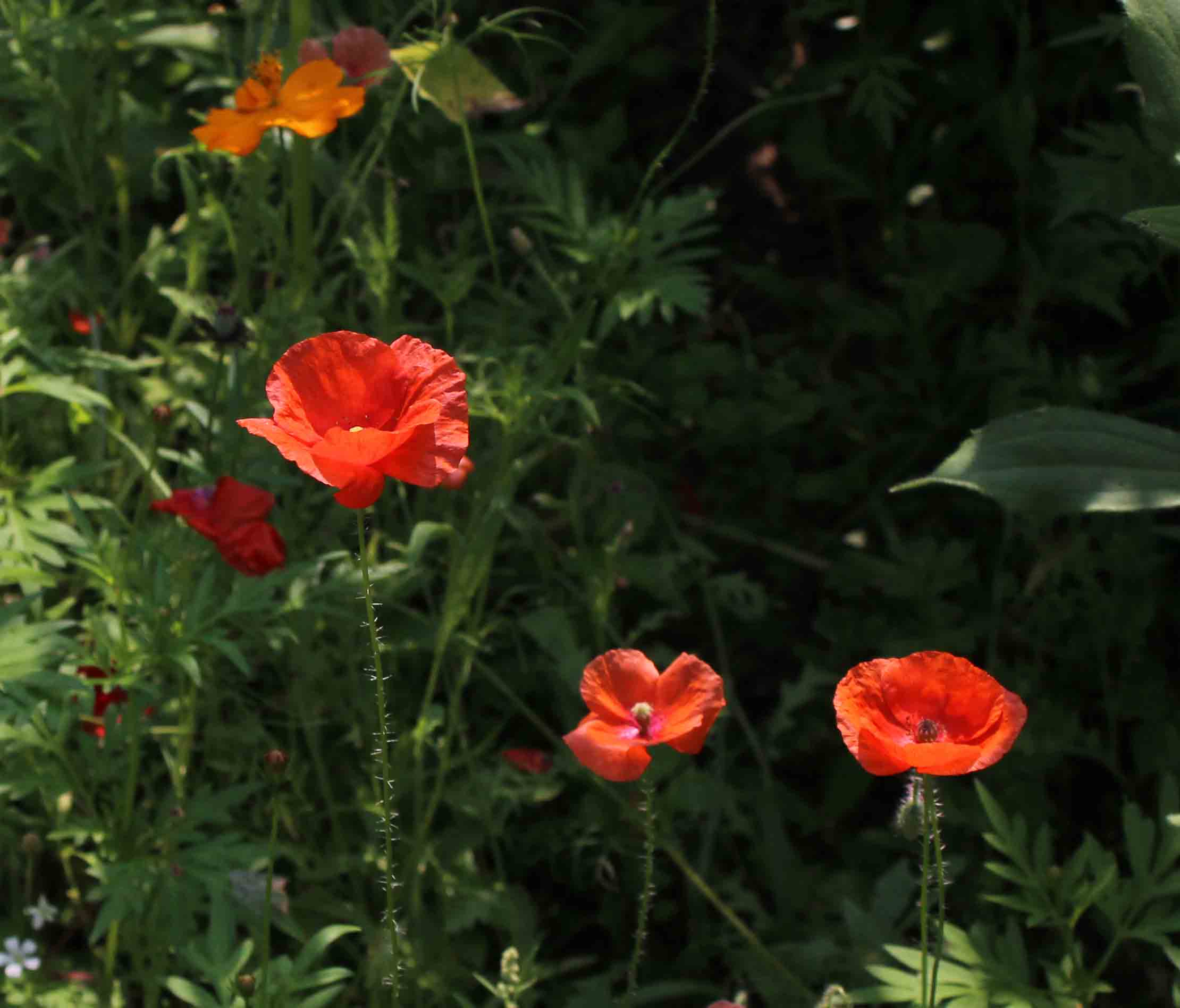 The annual wildflowers including Wild Marigold, Cosmo, and Poppy are racing their hearts out but it doesn’t look like they can get free of the pack.